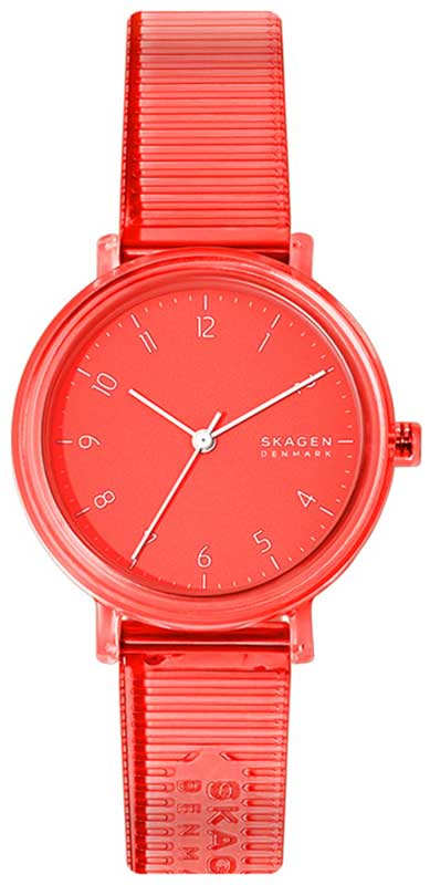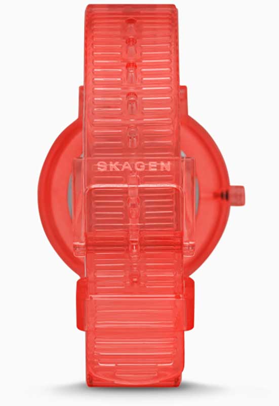 Dámské hodinky Skagen Aaren SKW2856 v zajímavé růžové barvě, vyrobené z plastu. 36mm průhledné pouzdro s růžovým ciferníkem, lineárními a číselnými indexy, tříhodinovou, minutovou a vteřinovou ručkou. Konstrukce uchycení popruhu umožňuje jeho výměnu bez použití jakéhokoli nářadí. Skvělá volba na léto!