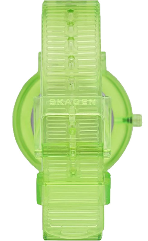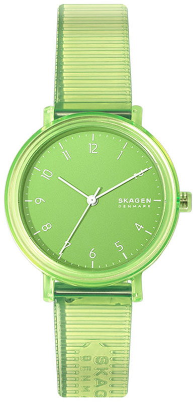 Dámské hodinky Skagen Aaren SKW2857 v zajímavé limetkové barvě, vyrobené z plastu. 36mm průhledné pouzdro se zeleným ciferníkem, lineárními a číselnými indexy, tříhodinovou, minutovou a vteřinovou ručkou. Konstrukce uchycení popruhu umožňuje jeho výměnu bez použití jakéhokoli nářadí. Skvělá volba na léto!