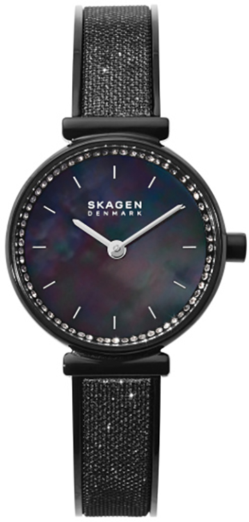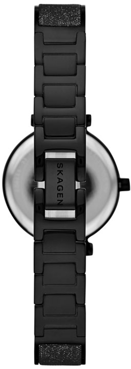 Dámské hodinky Skagen Annelie SKW2792 jsou novou řadou skandinávského výrobce, jejímž poznávacím znamením je elegance a dokonalý smysl pro estetiku. Krásné černé pouzdro o průměru 25 mm je ideální velikost šperku. Štíhlé tělo tohoto modelu skvěle padne na zápěstí, a to i díky černému náramku osazenému krystaly, který se skvěle snoubí s charakteristickou rukojetí Skagenu u samotného pouzdra. Uvnitř na prstenci kolem číselníku jsou v hustém formátu umístěny krystaly, které prosvětlují barevnou perleť.