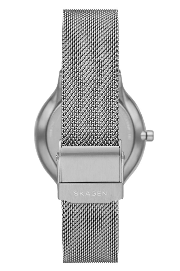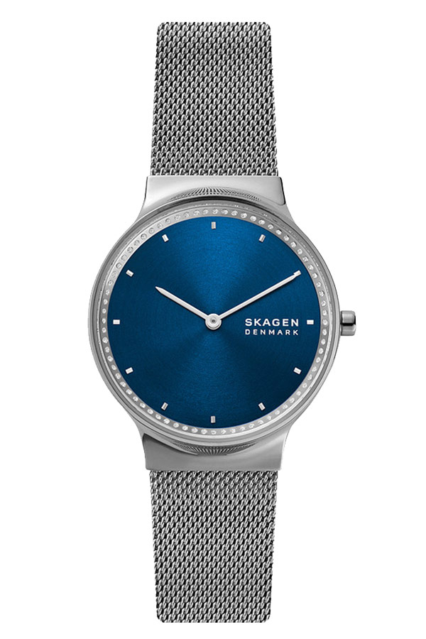Klasické módní hodinky od dánské značky Skagen z dámské kolekce Freja. SKW3028 jsou hodinky vyrobené z nerezové oceli ve stříbrné barvě. Psaníčko zdobené kulatými zirkony o šířce 34 mm je kombinováno s jemným ocelovým náramkem MESH. Hodinky mají krásný analogový modrý ciferník s jednoduchými ručičkami a bodovými indexy, který je krytý minerálním sklíčkem. Quartz Machineek je srdcem hodinek, které pohání malá baterie. Vodotěsnost do 30 metrů umožňuje bezpečné plavání s časovačem na zápěstí. Skagen Freja SKW3028 dokonale zapadne do současných trendů. Hodinky budou slušet ženám, které mají rády minimalismus a jednoduché outfitové doplňky.