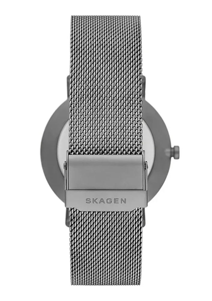 Klasické pánské hodinky Skagen Kuppel SKW6891 mají ocelové pouzdro v šedé barvě. Hodinky jsou dostupné ve velikosti 44 mm, což usnadňuje přizpůsobení tohoto modelu každému pánskému zápěstí. Výrobce svůj model zkombinoval s lehkým milánským náramkem v šedé barvě. Síťovaný náramek se majitelce příjemně obepne kolem zápěstí. Snadné nastavení délky náramku u spony usnadní rychlé přizpůsobení zápěstí majitele. Prezentované hodinky jsou perfektní pro muže, kteří požadují od svých hodinek maximální čitelnost.