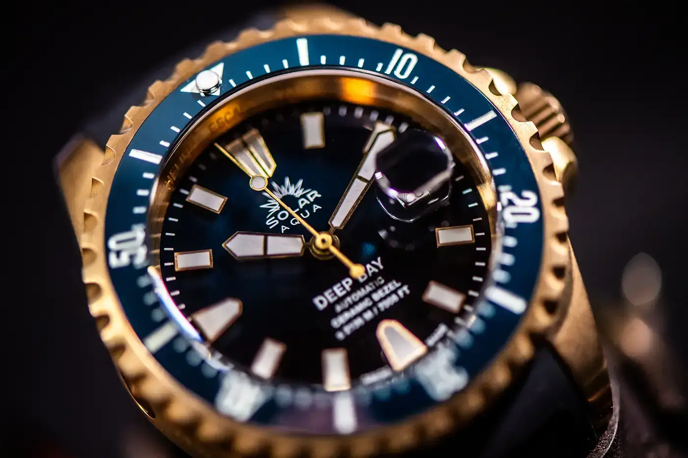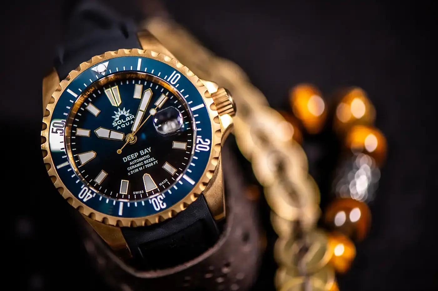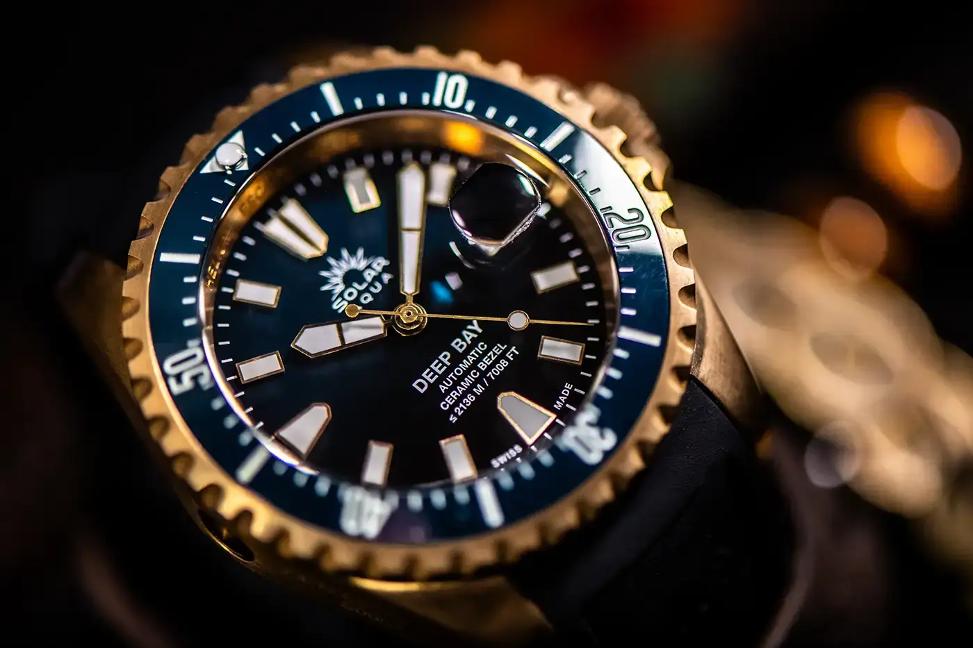 Značka Solar Aqua, jejíž historie sahá až do 20. století, vznikla díky vizi Timothyho Eatona, průkopníka kanadského maloobchodního průmyslu. Tyto hodinky spojovaly kanadskou pevnost se švýcarskou precizností. Po letech nečinnosti se značka vrací s modely 2.0, které moderním způsobem redefinují její bohatou tradici. Objevte Solar Aqua Deep Bay Bronze Blue v našem obchodě a zjistěte, jak tyto jedinečné bronzové hodinky posouvají hranice možností potápěčských hodinek.