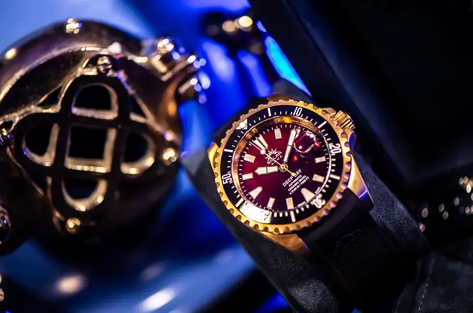 Solar Aqua se vrací s kultovní sérií potápěčských bronzových hodinek a nejen to! Tato legendární značka, známá svou vazbou na Rolex Watch Co., nabízí moderní modely inspirované klasickým hodinářstvím. Vlajková loď, Solar Aqua Deep Bay Bronze, se vyznačuje bronzovým pouzdrem, které získává jedinečnou patinu, extrémní vodotěsností 2136 m a spolehlivým strojkem Peseux P224. Objevte, proč jsou tyto hodinky symbolem stylu a funkčnosti pro nadšence do potápění i luxusních časomír!