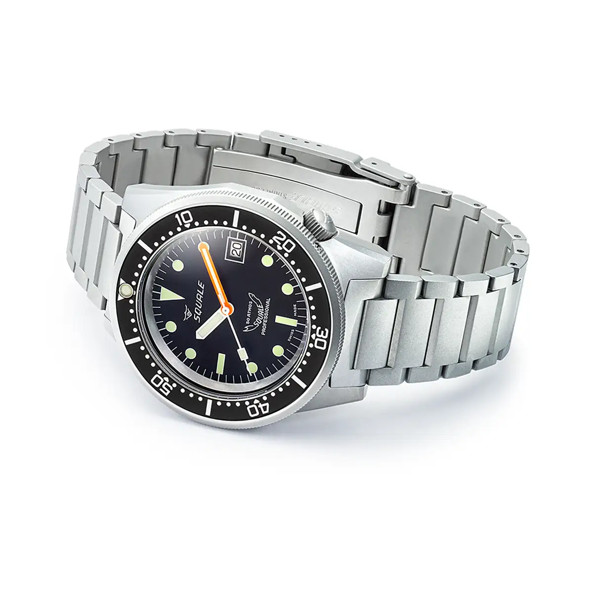 Squale 1521 Black Blasted 1521BKBL.SQ20S jsou profesionální potápěčské hodinky s nekompromisní konstrukcí a nástrojovou estetikou. V této verzi model 1521 získává robustní ocelový náramek typu oyster, jehož povrch – stejně jako u pouzdra – je upraven metodou bead blasted. Výsledek? Jednotná, matná struktura s vysokou odolností proti poškrábání, bez odlesků a připravená na jakoukoli výzvu pod vodou i na souši.