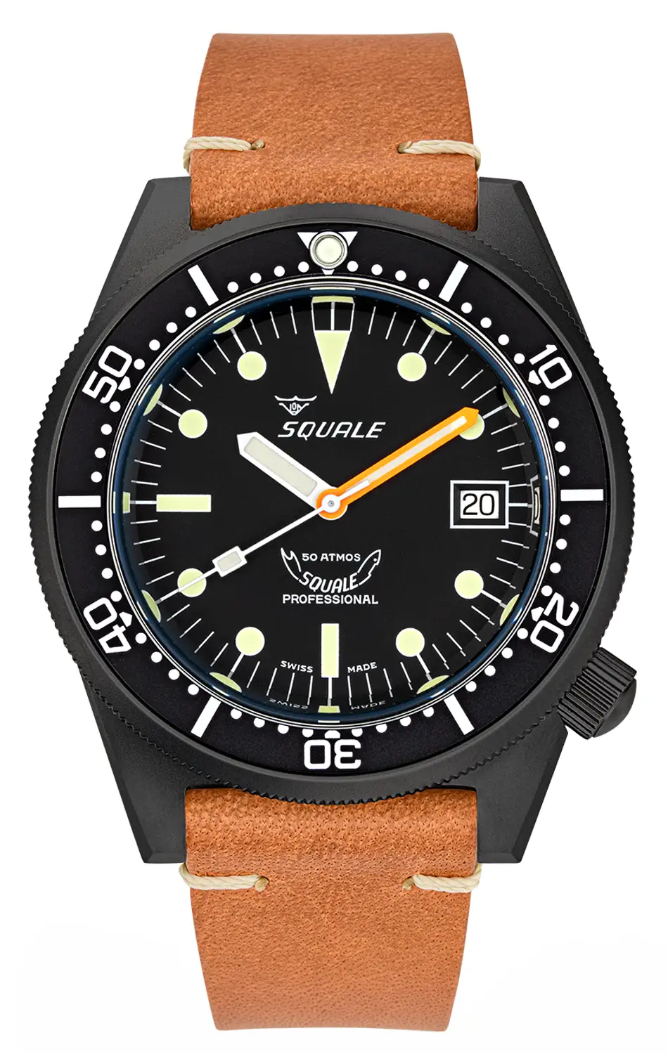 Squale 1521 PVD 1521PVD.PC jsou technické potápěčské hodinky v elegantním provedení, které spojují vysokou funkčnost s výrazným stylem. Černé pouzdro s povrchovou úpravou PVD, kontrastní černý ciferník a vytříbený kožený řemínek ve světle hnědém odstínu jim dodávají jedinečný charakter. Tento model je určen pro ty, kdo hledají spolehlivé nástrojové hodinky, ale nechtějí se vzdát elegance a osobitosti.