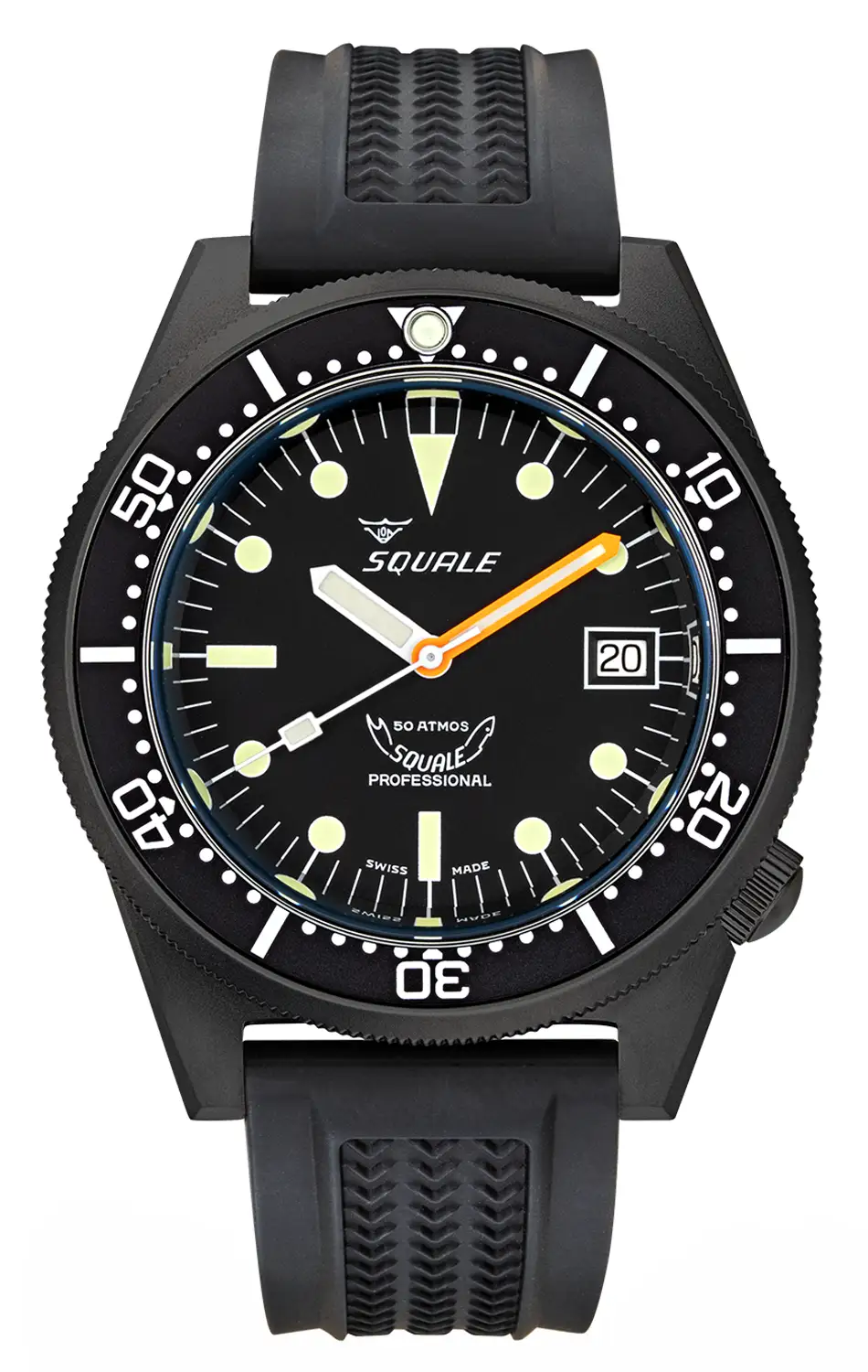 Squale 1521 PVD 1521PVD.VO jsou profesionální potápěčské hodinky, které spojují nástrojový charakter s odvážným, moderním stylem. Vybaveny černým pouzdrem s povrchovou úpravou PVD a výrazným černým ciferníkem, byly navrženy s ohledem na maximální funkčnost a spolehlivost pod vodou i mimo ni. Tato verze je osazena na černém gumovém řemínku se vzorem vln, který podtrhuje technický charakter modelu a zajišťuje výjimečné pohodlí při nošení.