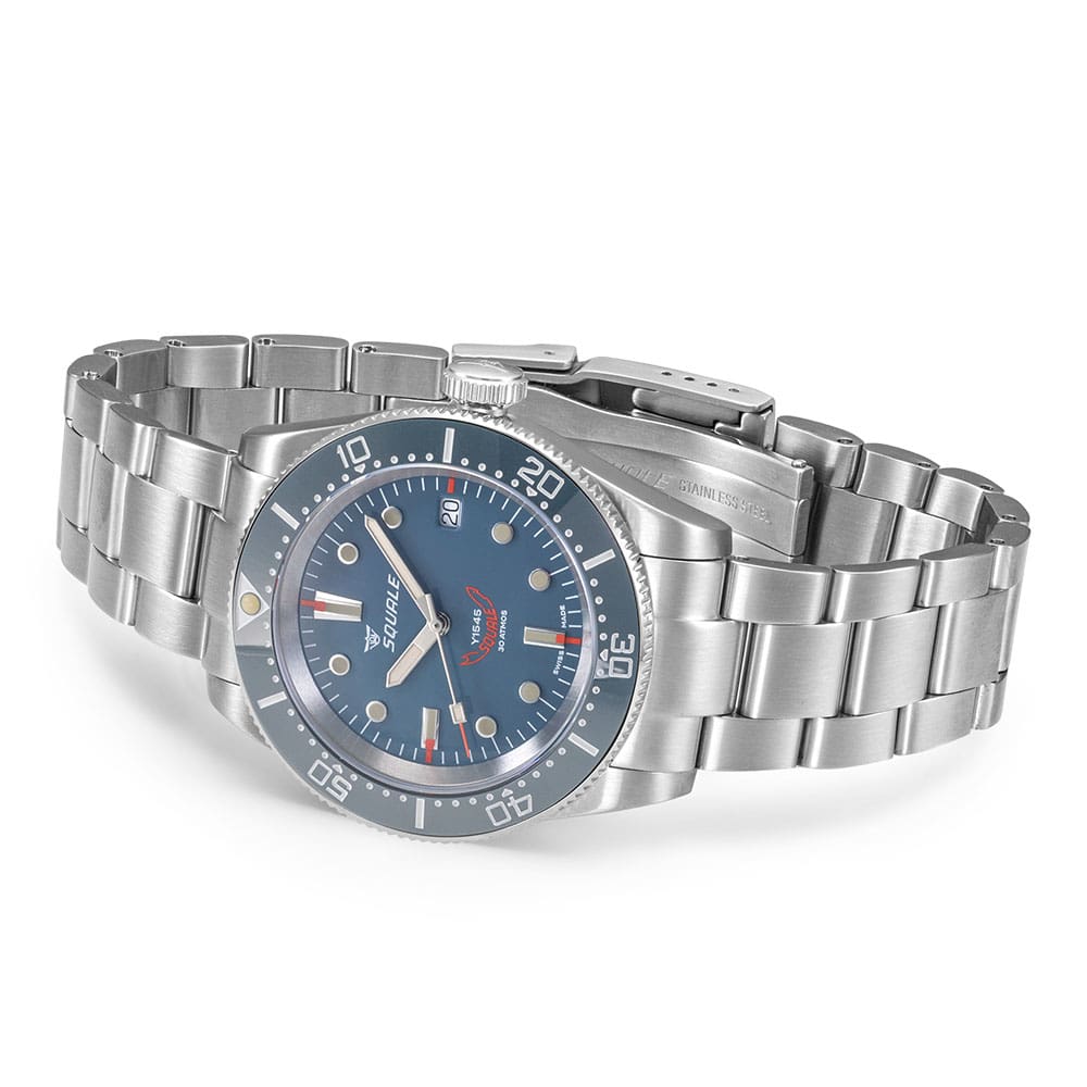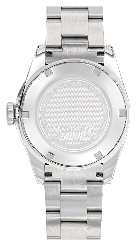Stejně jako u všech hodinek Squale jsou základními vlastnostmi bezpečnost a odolnost. Z tohoto důvodu je každý model z kolekce 1545 vybaven červeným pryžovým těsněním uvnitř šroubovací korunky . Toto těsnění (O-kroužek) umožňuje na první pohled poznat, zda je korunka otevřená nebo zavřená. Protože při správném uzavření korunky není těsnění patrné. Ciferník je krytý safírovým sklem prakticky odolným proti poškrábání s antireflexní vrstvou. Plněné radiově zbarvenými indexy a indikacemi Super-LumiNova zaručují viditelnost ve tmě a jedinečný vzhled.
