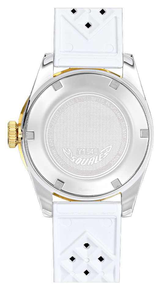 Stejně jako u všech hodinek Squale jsou základními vlastnostmi bezpečnost a odolnost. Z tohoto důvodu je každý model z kolekce 1545 vybaven červeným pryžovým těsněním uvnitř šroubovací korunky . Toto těsnění (O-kroužek) umožňuje na první pohled poznat, zda je korunka otevřená nebo zavřená. Protože při správném uzavření korunky není těsnění patrné. Ciferník je krytý safírovým sklem prakticky odolným proti poškrábání s antireflexní vrstvou. Indexy a označení Super-LumiNova C3 vyplněné svítícím materiálem zaručují viditelnost ve tmě a jedinečný vzhled.