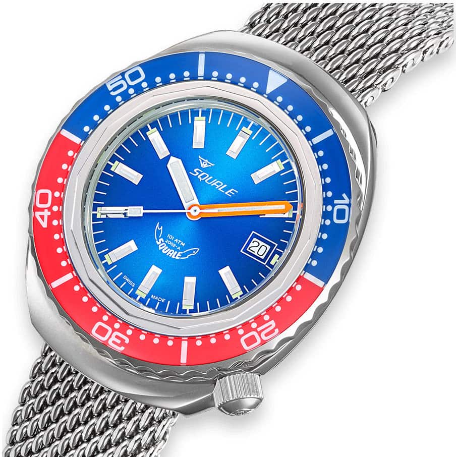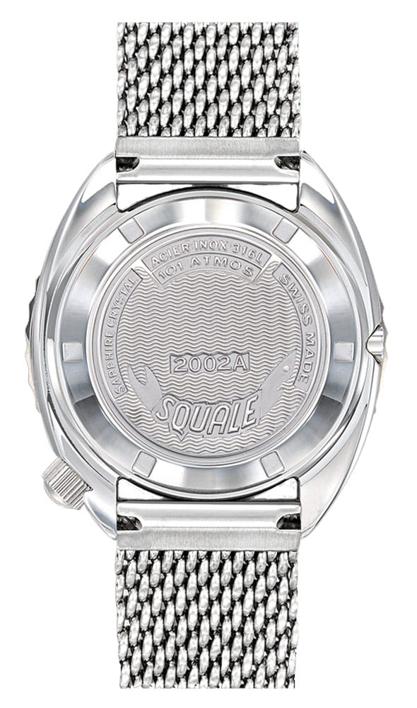 Hodinky Squale 2002 jsou profesionální model vytvořený pro profesionální i amatérské divere. Hodinky používají také diverské služby v mnoha zemích. Hodinky Squale 2002SSBLLRBLME22 pocházejí z této ikonické kolekce, která odkazuje na diverské rekordy sedmdesátých let s hodinkami Squale na zápěstí.
