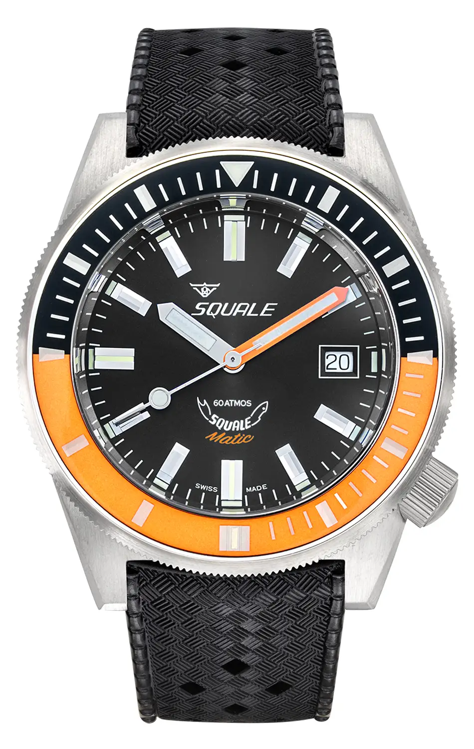 Hodinky Squale Matic MATICXSC.HT jsou profesionální potápěčský model určený náročným potápěčům a milovníkům technických sportovních časomír. Model se vyznačuje sytě černým ciferníkem, doplněným oranžovými detaily na indexech a výraznou oranžovou minutovou ručičkou. Dvoubarevná potápěčská luneta z ušlechtilé oceli v černo-oranžových tónech plní kromě estetické také klíčovou funkci při potápění – oranžový segment prvních 15 minut umožňuje rychlé odečtení času nutného pro kontrolu dekomprese. Profesionální charakter hodinek potvrzuje působivá vodotěsnost do 600 m (60 ATM).