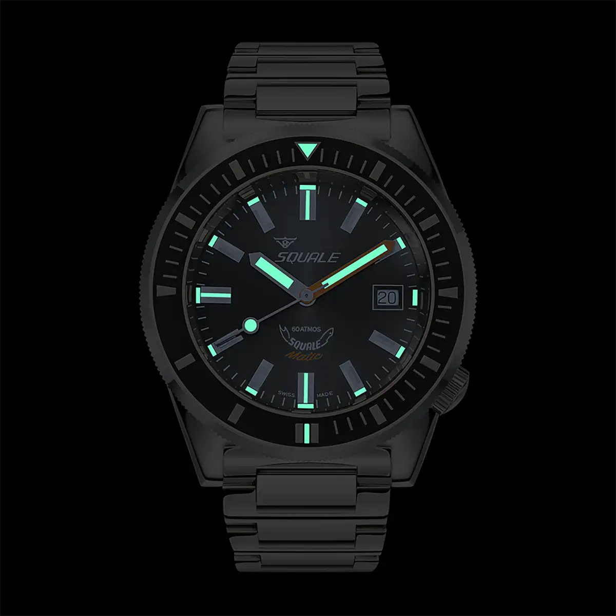 Pouzdro hodinek Squale Matic o průměru 42 mm je vyrobeno z chirurgické nerezové oceli, což zajišťuje mimořádnou odolnost a životnost. Automatický švýcarský strojek Swiss Made a šroubovací korunka umístěná na 4. hodině zvyšují komfort nošení, zejména při potápění. Čitelnost ciferníku zaručují výrazné indexy a ručky pokryté luminiscenční vrstvou Super-LumiNova, která svítí intenzivně i v extrémních podmínkách. Lehce vypouklé safírové sklíčko s antireflexní úpravou účinně eliminuje odlesky a vykazuje vynikající odolnost proti poškrábání.