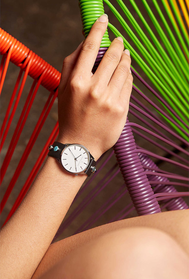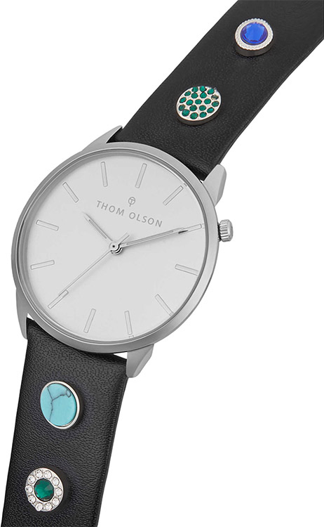 Módní hodinky Thom Olson Gypset Black Treasure CBTO018 . Mix kalifornského stylu kombinující módu na dráhách, vintage styl a schopnost bořit všechny konvence. Kombinace temné černé se safírovými a smaragdovými kouzly činí Gypset Black Treasure tajemným a přitažlivým jako skrytý poklad. Hodinky pro sebevědomého, společensky uvědomělého člověka, který hledá inspirativní model kladoucí důraz na jedinečný styl a individualismus. Přívěsky připevněné k náramku nebo opasku jsou zaměnitelné.