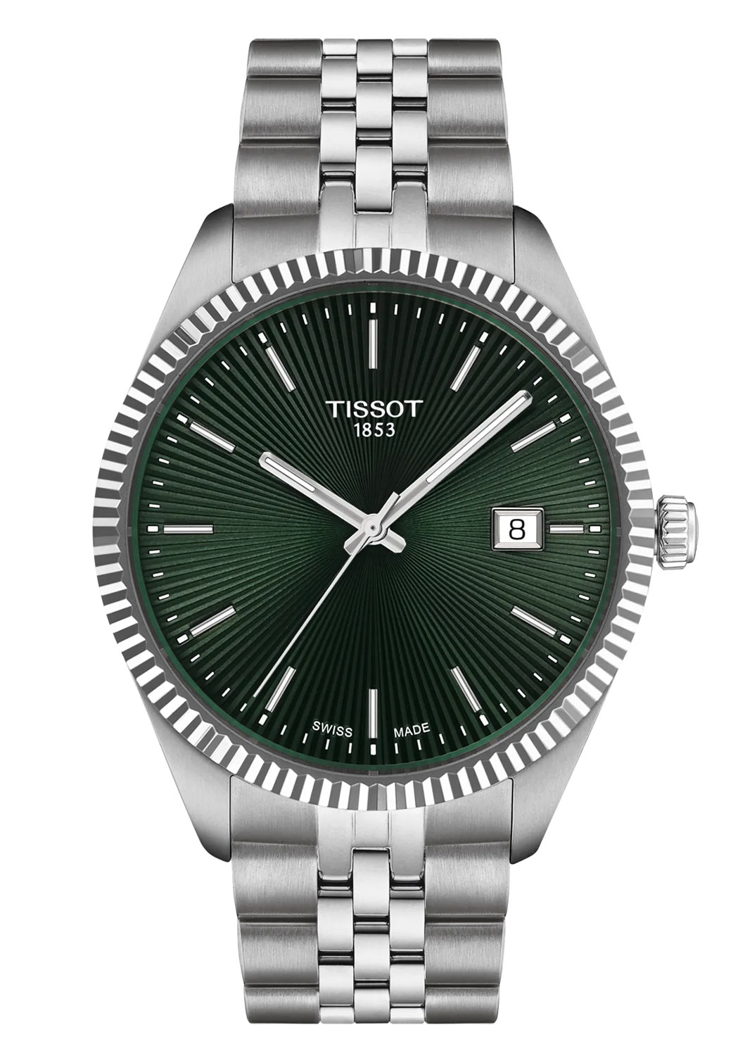 Zelený gilošovaný ciferník inspirovaný slunečními paprsky přitahuje pozornost jemným odrazem světla a dodává hodinkám Tissot Ballade hloubku a jedinečný charakter. Čiré ruce pokryté luminiscenční vrstvou Super-LumiNova® zaručují vynikající viditelnost ve tmě. Elegantní ocelové indexy zdobí celé hodiny a ve tři hodiny je praktické datumové okénko zobrazující aktuální den v měsíci. Číselník je výjimečně čitelný a umožňuje vám rychle a pohodlně odečítat čas na první pohled.