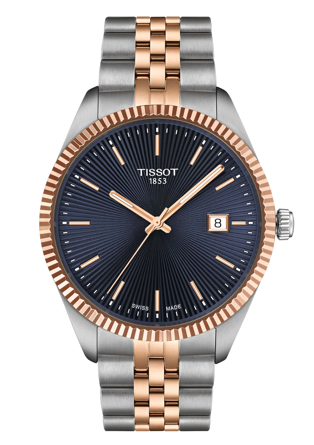 Modrý gilošovaný ciferník inspirovaný slunečními paprsky přitahuje pozornost jemným odrazem světla a dodává bicolorovým hodinkám Tissot Ballade hloubku a jedinečný charakter. Čiré, pozlacené ručičky pokryté luminiscenční vrstvou Super-LumiNova® zaručují vynikající viditelnost ve tmě. Elegantní ocelové indexy zlaté barvy zdobí celé hodiny a ve tři hodiny je praktické datumové okénko zobrazující aktuální den v měsíci. Číselník je výjimečně čitelný a umožňuje vám rychle a pohodlně odečítat čas na první pohled.