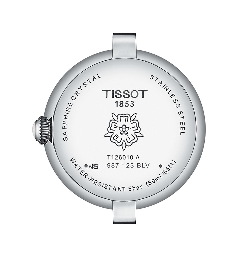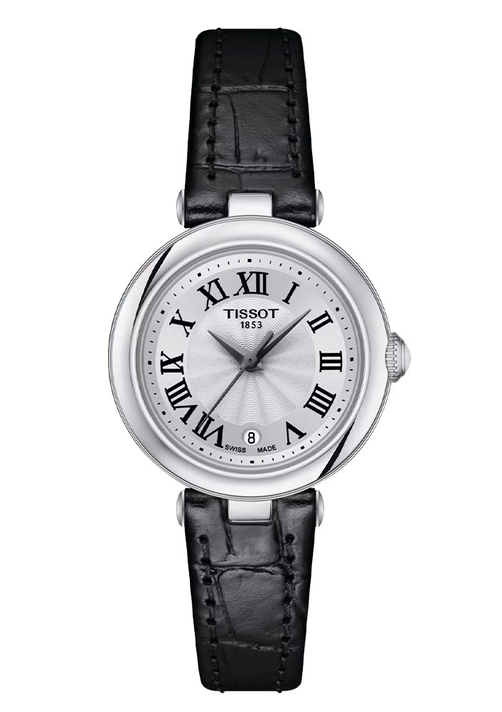 Klasické dámské hodinky Tissot Bellissima Small Lady T126.010.16.013.00 vyrobené z nerezové oceli, s průměrem pouzdra 26 mm . Bellissima je dokonalým společníkem v každodenním životě. Jemné, romantické tvary jsou obsaženy v hladkém kulatém pouzdře s mírně vystupujícím safírovým sklíčkem, které je odolné proti poškrábání. Na tři hodiny je korunka, která slouží k nastavení času, je zdobena bílým keramickým kabošonem (krajková dekorace). Velmi pohodlný, měkký na nošení černý kožený řemínek zdobený vzorem aligátora. Zvláštní pozornost si zaslouží krásný ciferník. Na jeho povrchu je gilošovaná růžice, kolem níž jsou uspořádány elegantní černé římské číslice a označení typu Fleur de Lys. Bateriový Machineek quartz je přesný švýcarský ETA F03.111 s datumovkou na pozici šest hodin. Ze spodní části Tissot je zadní strana pouzdra s ozdobnou růžicí, po jeho stranách je volný prostor pro umístění věnování, což z těchto hodinek dělá perfektní dárek pro milovanou osobu. Povrchová úprava na nejvyšší úrovni a každý detail je navržen tak, aby zdůraznil krásu a šarm ženy, která nosí Bellissima na zápěstí. Tyto hodinky jsou každodenním doplňkem a věrným stylovým pomocníkem pro dámu, která chce to nejlepší a především pro ženu, která ráda vynikne.