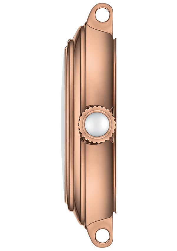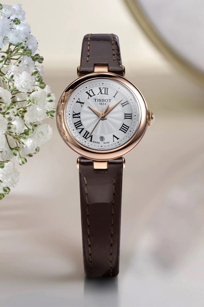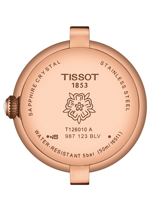 Klasické dámské hodinky Tissot Bellissima Small Lady T126.010.36.013.00 vyrobené z nerezové oceli a pozlacené PVD růžovým zlatem s průměrem pouzdra 26 mm . Bellissima je dokonalým společníkem v každodenním životě. Jemné, romantické tvary obsažené v hladkém, kulatém pouzdře s mírně vystupujícím safírovým sklíčkem, které je odolné proti poškrábání. Na tři hodiny je korunka, která slouží k nastavení času, je zdobena bílým keramickým kabošonem (krajková dekorace). Velmi pohodlný, měkký kožený řemínek v hnědé barvě zdobený vzorem aligátora. Zvláštní pozornost si zaslouží krásný ciferník. Na jeho povrchu je gilošovaná růžice, kolem níž jsou umístěny elegantní černé římské číslice a zlacené ručičky. Bateriový Machineek quartz je přesný švýcarský ETA F03.111 s datumovkou na pozici šest hodin. Ze spodní části Tissot je zadní strana pouzdra s ozdobnou růžicí, po jeho stranách je volný prostor pro umístění věnování, což z těchto hodinek dělá perfektní dárek pro milovanou osobu. Povrchová úprava na nejvyšší úrovni a každý detail je navržen tak, aby zdůraznil krásu a šarm ženy, která nosí Bellissima na zápěstí. Tyto hodinky jsou každodenním doplňkem a věrným stylovým pomocníkem pro dámu, která chce to nejlepší a především pro ženu, která ráda vynikne.