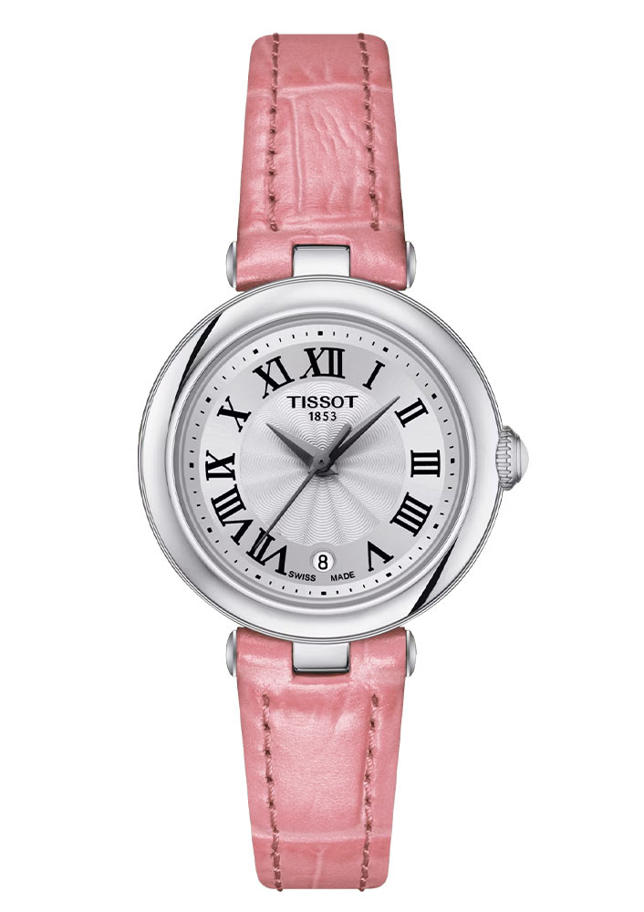 Klasické dámské hodinky Tissot Bellissima Small Lady T126.010.16.013.01 vyrobené z nerezové oceli, s průměrem pouzdra 26 mm . Bellissima je dokonalým společníkem v každodenním životě. Jemné, romantické tvary jsou obsaženy v hladkém kulatém pouzdře s mírně vystupujícím safírovým sklíčkem, které je odolné proti poškrábání. Na tři hodiny je korunka, která slouží k nastavení času, je zdobena bílým keramickým kabošonem (krajková dekorace). Velmi pohodlný, měkký na nošení růžový kožený řemínek zdobí vzor aligátora. Zvláštní pozornost si zaslouží krásný ciferník. Na jeho povrchu je gilošovaná růžice, kolem níž jsou uspořádány elegantní černé římské číslice a označení typu Fleur de Lys. Bateriový Machineek quartz je přesný švýcarský ETA F03.111 s datumovkou na pozici šest hodin. Ze spodní části Tissot je zadní strana pouzdra s ozdobnou růžicí, po jeho stranách je volný prostor pro umístění věnování, což z těchto hodinek dělá perfektní dárek pro milovanou osobu. Povrchová úprava na nejvyšší úrovni a každý detail je navržen tak, aby zdůraznil krásu a šarm ženy, která nosí Bellissima na zápěstí. Tyto hodinky jsou každodenním doplňkem a věrným stylovým pomocníkem pro dámu, která chce to nejlepší a především pro ženu, která ráda vynikne.