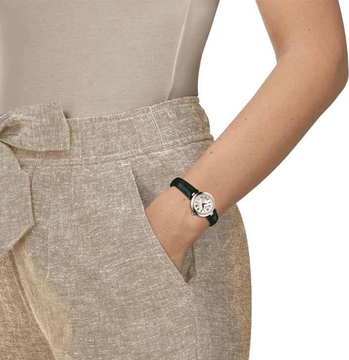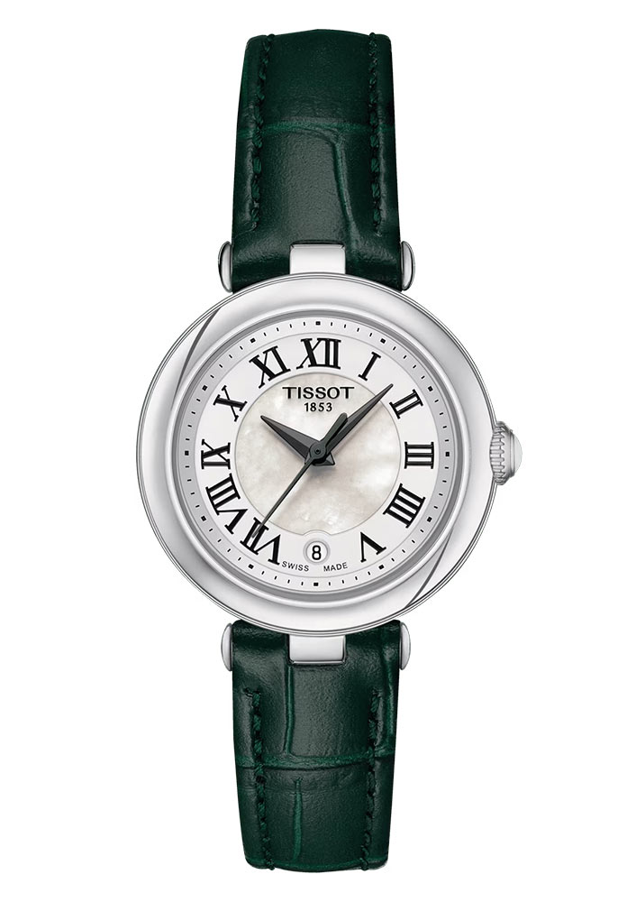 Elegantní dámské hodinky Tissot tvoří malé pouzdro z nerezové oceli. Ocel je nerezová, nealergická a odolná proti korozi. Hodinky Tissot Bellissima Small Lady jsou perfektním řešením pro ženy, které hledají hodinky na zápěstí do průměru 26 mm. Díky kompaktnímu, ale stylovému designu vypadají tyto krásné hodinky skvěle na každé ruce. Korunku hodinek zdobí keramický kámen. Víko umístěné na zadní straně pouzdra je zdobeno rytinou v podobě květiny. Tento model je kombinován se zeleným koženým páskem. Lehký a měkký řemínek s exotickým vzorem je opatřen bezpečnou a pohodlnou motýlkovou sponou se dvěma knoflíky.
