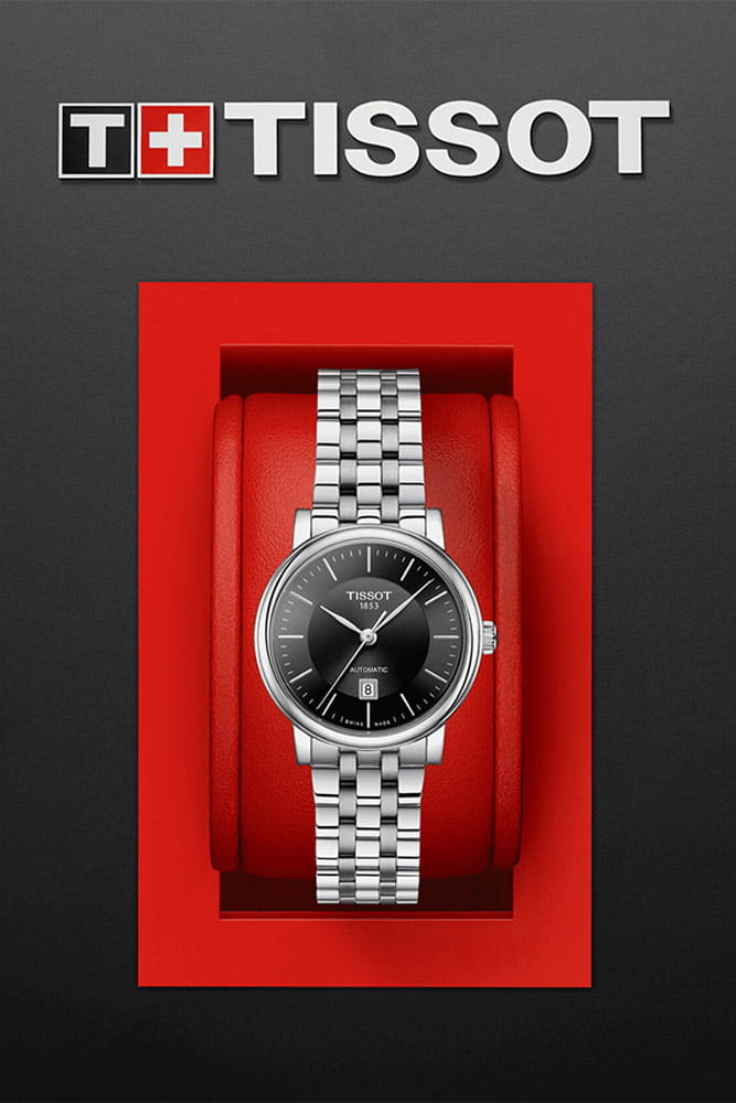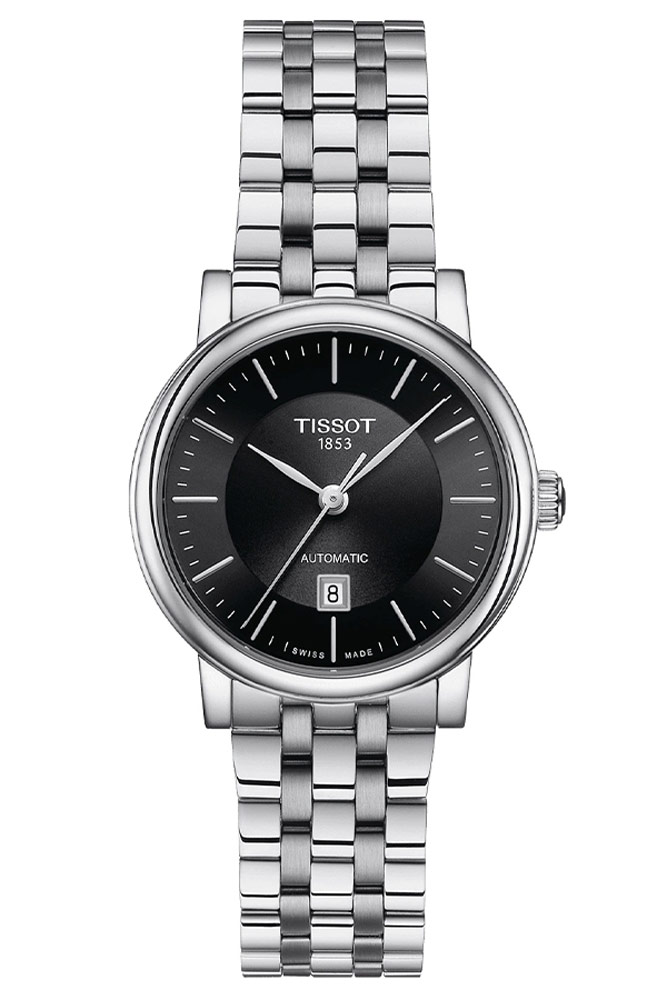 Tissot Carson Premium Automatic Lady T122.207.11.051.00 klasické hodinky pro dámy, které hledají elegantní doplněk ke svému outfitu. Krásný, čistý černý ciferník s kruhovým vzorem vyčnívajícím ze středu. Jednoduché indexy a nabroušené ručičky zajišťují čitelnost. Pouzdro z nerezové oceli o průměru 30 mm je štíhlé, elegantní a v kombinaci s lehkým a příjemným náramkem na nošení. Zadní strana pouzdra, která je ze spodní strany glazovaná, zobrazuje zdobený automatický Machineek ETA 2671, který nabízí přesnost Machineku.