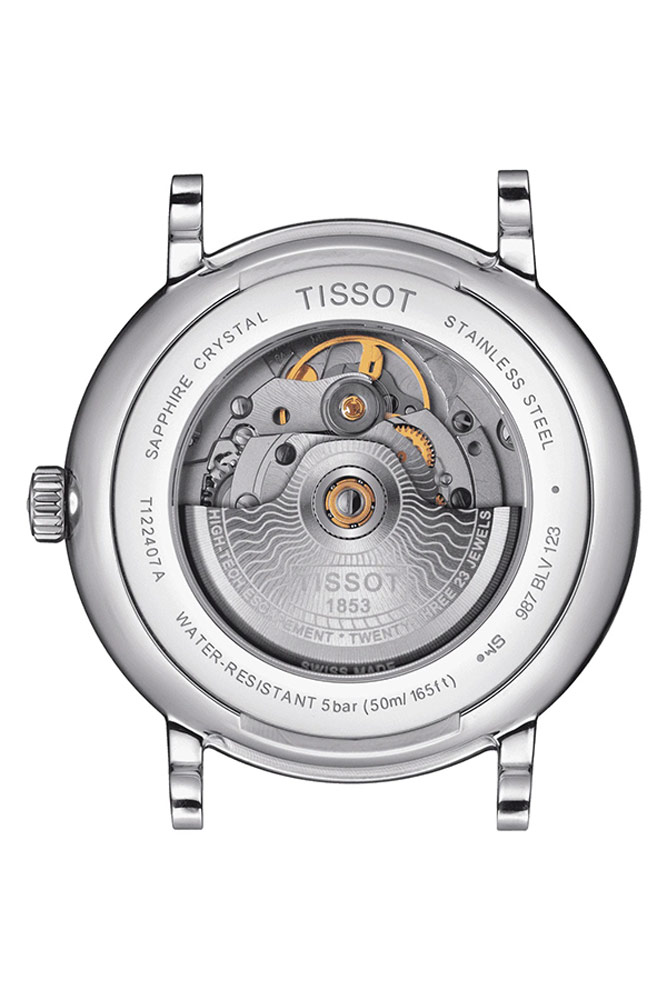Tissot Carson Premium Automatic T122.407.11.031.00 , klasické hodinky pro muže, kteří ocení nadčasovou eleganci. Minimalistický ciferník ve stříbrné barvě s kruhovým vzorem vybíhajícím ze středu. Jednoduché indexy a nabroušené ručičky zajišťují čitelnost. Pouzdro z nerezové oceli o průměru 40 mm je štíhlé, elegantní a v kombinaci s lehkým a příjemným náramkem. Na zadní straně, která je zespodu prosklená, je vidět vyšperkovaný automatický Machineek Powermatic 80, který nabízí nadprůměrně 80hodinovou rezervu chodu.