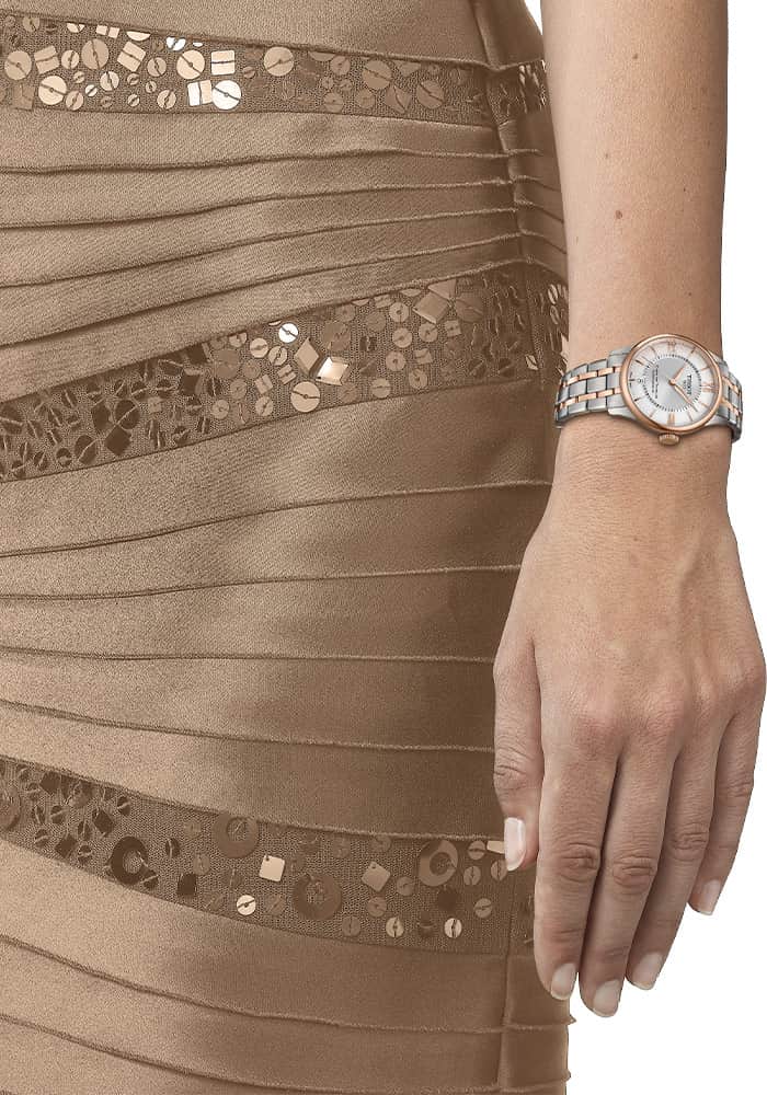 Nadčasová klasika nové generace s luxusním designem, skutečně ženské hodinky Tissot T1392072203800 rozbuší srdce každé dámy. Dámské 34mm kulaté pouzdro je vyrobeno z nerezové oceli třídy 316L ve stříbrné barvě s růžovým zlatem pozlaceným PVD zlatem. Na očkách pouzdra je připevněn elegantní stříbrný náramek s pozlacenými články a motýlkovou sponou . Motýlí náramek bezpečně a pohodlně obepne zápěstí, což zajistí pohodlí při nošení hodinek. Jeho výměna je snadnější než kdy dříve díky použití teleskopů bez použití nářadí.