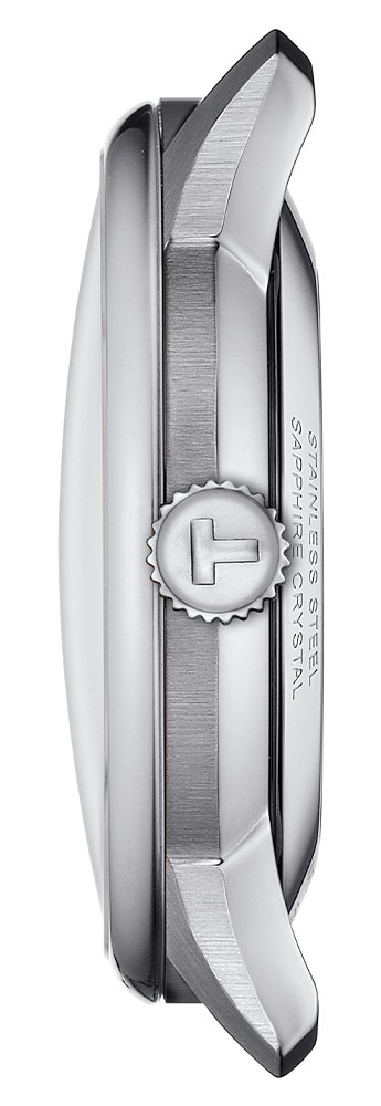 Pod vypouklým safírovým sklíčkem s antireflexní vrstvou, extrémně tvrdým a těžko poškrábatelným, se nachází vypouklý stříbrný číselník . Ciferník se vyznačuje štíhlými zakřivenými a rafinovanými ručičkami a fasetovými indexy, které dodávají eleganci celkovému designu. Na pozici šesté hodiny umístil výrobce datumové okno s aktuálním dnem v měsíci. Prezentované hodinky Tissot jsou návrhem pro stylové nadšence a budou skvělým doplňkem k elegantnímu každodennímu outfitu. Určitě se jí budou líbit elegantní bižuterní doplňky z každého šatníku.
