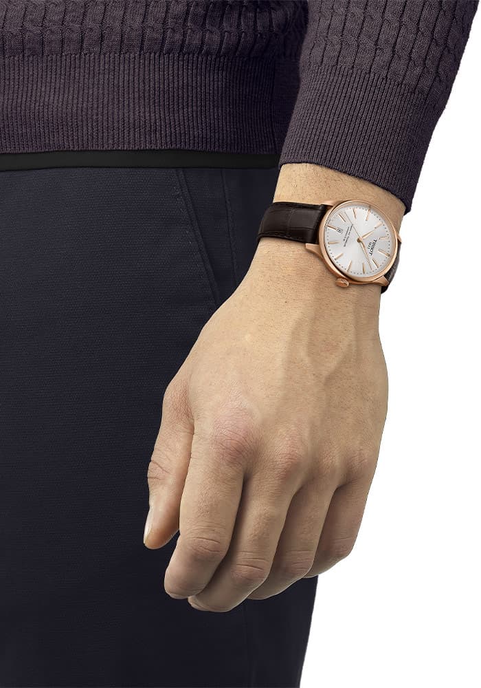 Nadčasová klasika nové generace s luxusním designem, hodinky Tissot T1398073603100 rozbuší srdce každého. Kulaté pouzdro z nerezové oceli 316L v barvě růžového zlata s PVD povlakem v univerzální velikosti 39 mm . Na očka pouzdra je připevněn elegantní hnědý kožený řemínek. Řemínek s motýlkovou sponou bezpečně a pohodlně obepne zápěstí, což zajistí pohodlí při nošení hodinek. Jeho výměna je snadnější než kdy jindy díky použití teleskopů bez použití nářadí.