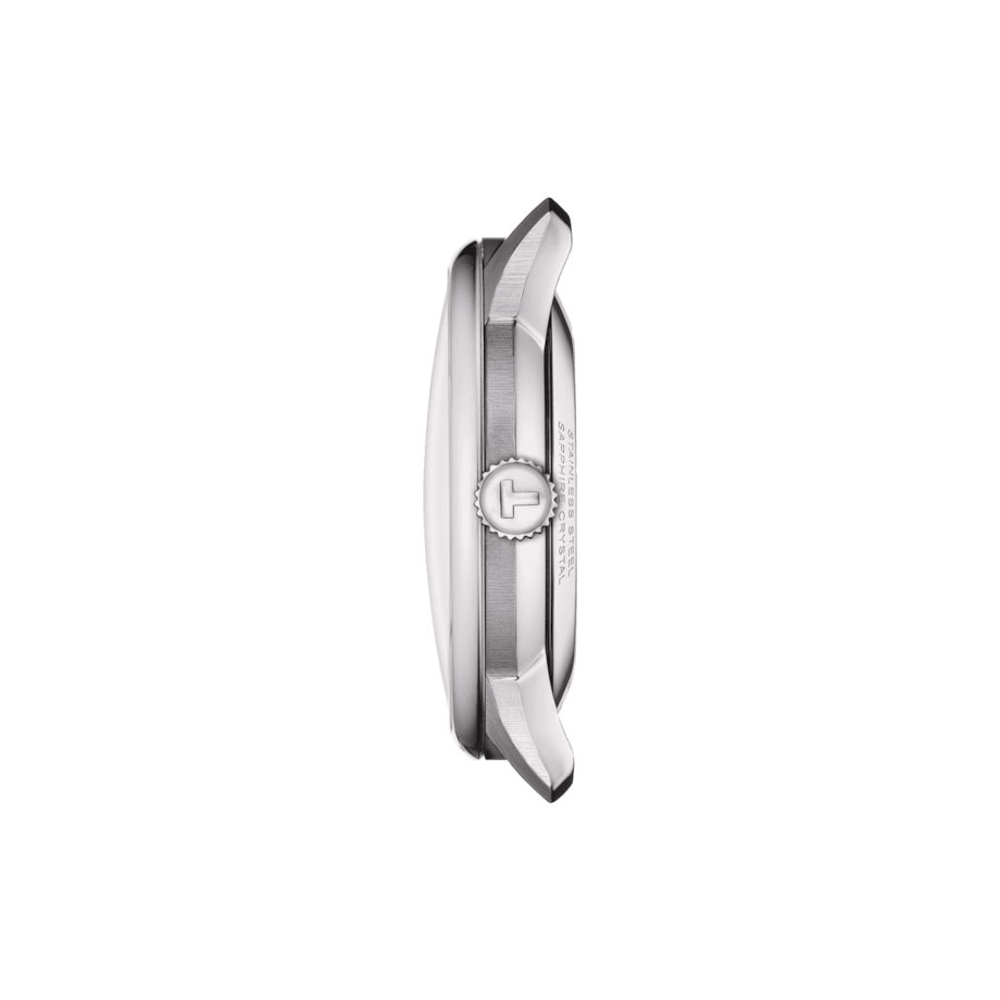 Zepředu je viditelný úzký rám pouzdra. Kvalitní safírové sklo chrání modrý prsten, na kterém jsou umístěny štíhlé indexy. Střed je odhalen, což neobvyklým způsobem odhaluje tajemnou konstrukci švýcarského mechanismu Powermatic 80. Automatický stroj je vybaven křemíkovým hřebenem Nivachron™, který chrání celý systém před magnetickým polem a vyššími teplotami. Tento precizní mechanismus nabízí impozantní rezervu chodu až 80 hodin. Automatické hodinky Tissot na řetízku se vyznačují módní barevností, která zapadne do každého šatníku. Tento model bude s hrdostí vypadat na každém zápěstí.