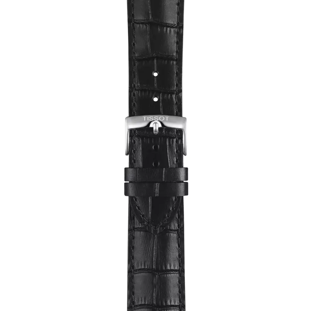 Ocelové pouzdro s propracovanými proporcemi bylo doplněno hlubokým černým ciferníkem, na kterém jsou jasně vyznačeny všechny ukazatele chronografu. Časomíra je vybavena odolným safírovým sklem s antireflexní úpravou a vodotěsností do 100 metrů, což zvyšuje její praktičnost při každodenním používání. Černý kožený řemínek Tissot s exotickou texturou dodává celku klasický charakter a zajišťuje komfort nošení, zatímco celek pohání přesný quartzový strojek, který garantuje přesnost a spolehlivost.