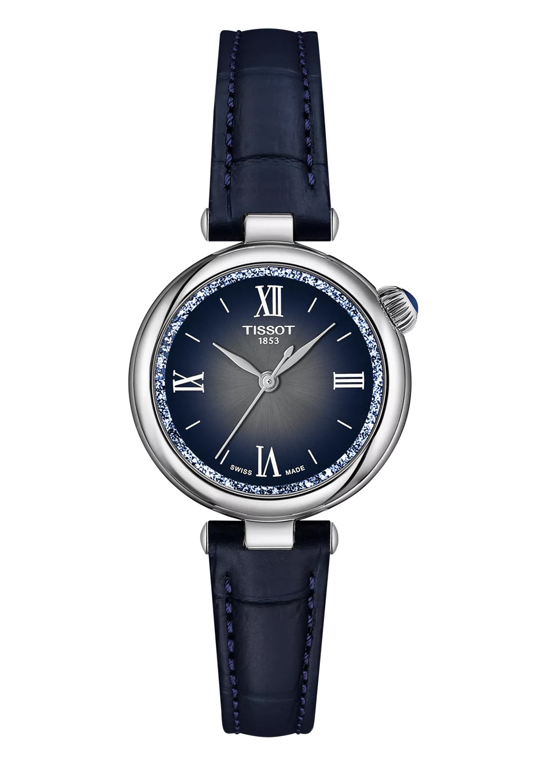 Hodinky Tissot z kolekce Desir zaujmou tenkým pouzdrem o průměru 28 mm, vyrobené z odolné nerezové oceli 316L, odolné vůči korozi a zaručující mnohaletý lesk. Korunka v hodinkách Tissot Desir je umístěna na dvou hodinách, díky čemuž je tento design jedinečný. Číselník účinně chrání konvexní safírové sklíčko, extrémně odolné proti poškrábání. Dámské hodinky Tissot T1520101603801 jsou vybaveny elegantním modrým koženým páskem s bezpečnou motýlkovou sponou na dva knoflíky. Přesný švýcarský strojek quartz s funkcí EOL (End-of-Life) zajišťuje spolehlivost a informuje vás, když je třeba vyměnit baterii, a nabízí mnoho let přesného provozu.