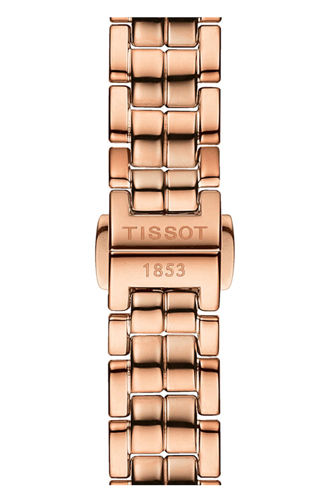 Model T094.210.33.116.02 je kulaté pouzdro vyrobené z růžové zlaté nerezové oceli s PVD povlakem. Na uších pouzdra byl připevněn unikátní náramek. Použitý náramek je vyroben z nejkvalitnější chirurgické oceli 316L. Náramek, i když je velmi tenký, je extrémně odolný. Pod safírovým sklíčkem, které je extrémně tvrdé a těžko se poškrábe, se nachází velký čitelný perleťový ciferník. Jasný ciferník je zdoben krásnými diamanty na hodinových bodech. Užitečnou funkcí časomíry se stalo datumové okénko umístěné nad pozicí šesté hodiny. Datumovka nám ukazuje aktuální den v měsíci.
