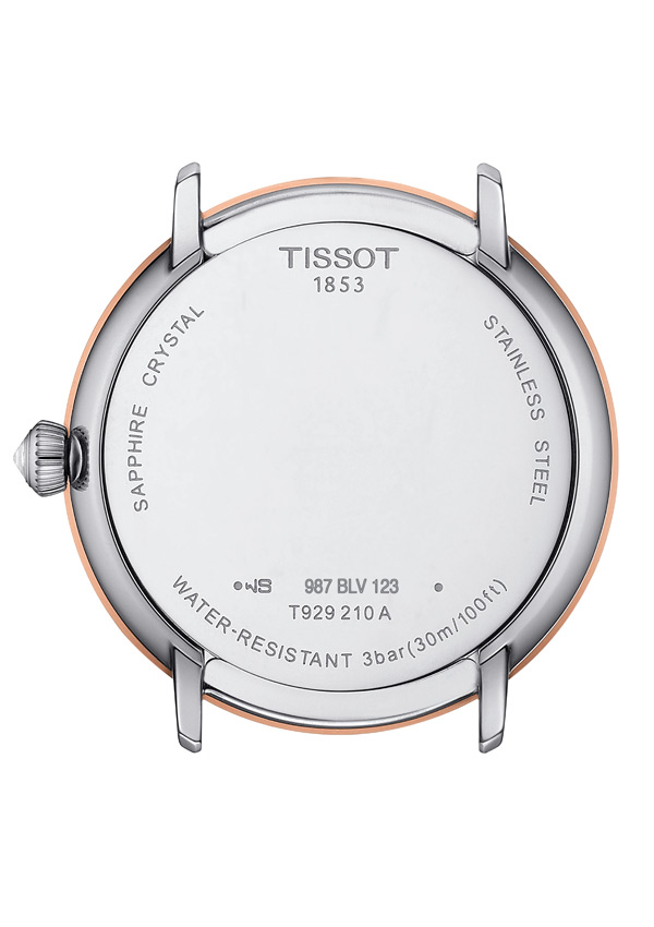 Elegantní dámské hodinky Tissot T929.210.46.261.00 jsou uzavřeny v 33mm pouzdru z nerezové oceli 316L, které je obohaceno o leštěný prsten z růžového zlata. Zlato je jednou z nejžádanějších surovin na Zemi díky své vysoké brilanci, odolnosti proti rozpouštění a rezivění. Díky použitému ušlechtilému materiálu si luneta zachová svůj drahocenný lesklý povrch bez otírání a v případě potřeby může být podrobena procesu leštění. Konvenci doplňuje krajka zdobená kabošonem v podobě pyramidy. Uvnitř se ukrývá spolehlivý švýcarský mechanismus zodpovědný za precizní chod hodinek. Tato kombinace vlastností dělá Tissot Glendora perfektním společníkem pro každodenní i elegantní formální oblečení.