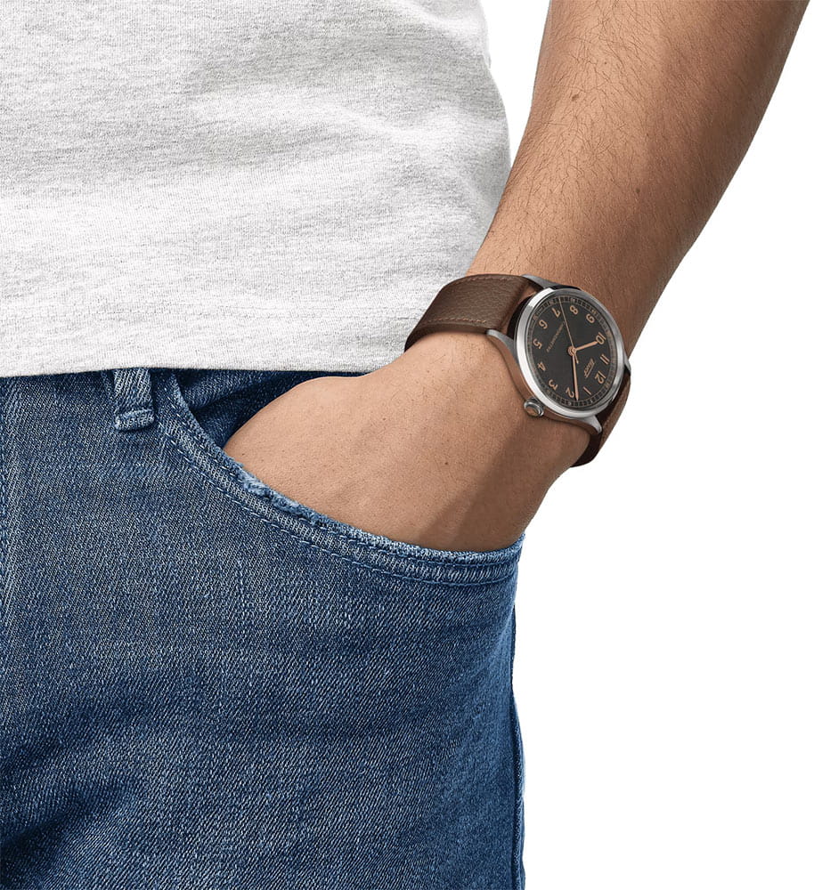 Pánské hodinky Tissot Heritage 1938 Automatic COSC T1424641606200 mají kulaté pouzdro z nerezové oceli odolné proti korozi. Výrobce nabízí tento model v 39mm pouzdře s měkkým a na dotek příjemným hnědým koženým páskem. Značka Tissot usnadnila výměnu řemene díky rychlovýměnnému systému bez potřeby dalšího nářadí. Na zadní straně hodinek je kryt s průhledným okénkem, který umožňuje obdivovat práci unikátního mechanismu. Hodinky Tissot Heritage 1938 Automatic T142.464.16.062.00 jsou vybaveny švýcarským strojkem ETA SWISSAUTOMATIC 2824-2 s certifikátem přesnosti strojku COSC, což znamená prestižní název CHRONOMETER daný tomuto modelu. Controle Officiel Suisse des Chronometres testuje hodinky z různých úhlů pohledu, při splnění všech podmínek přesnosti a kvality, které jsou při testech nutné, se z hodinek stane chronometr.