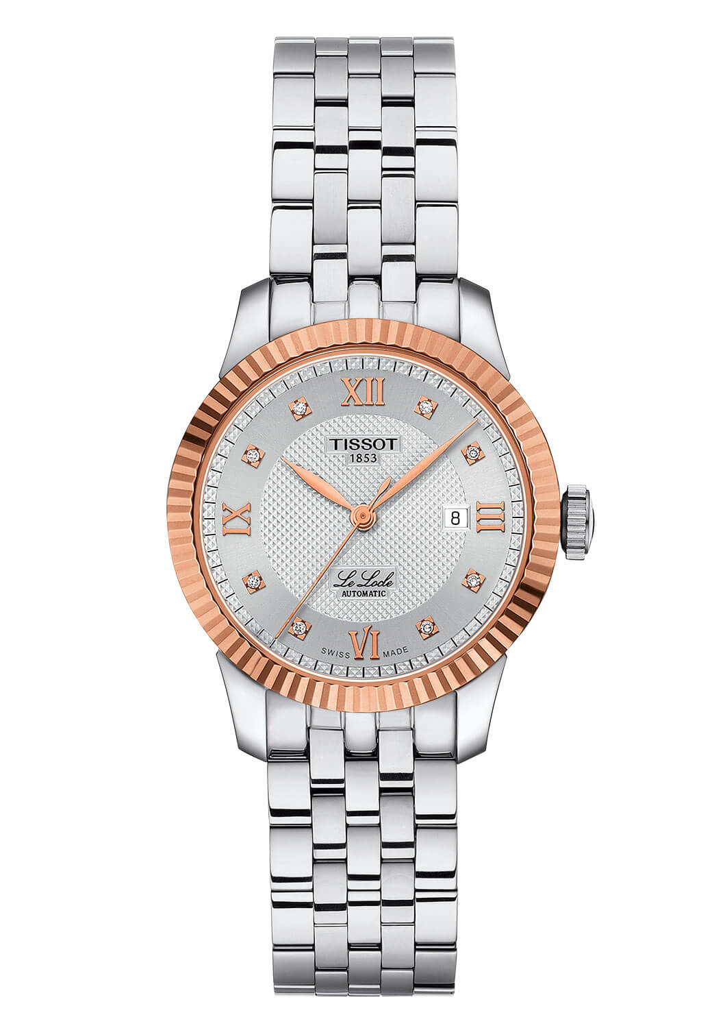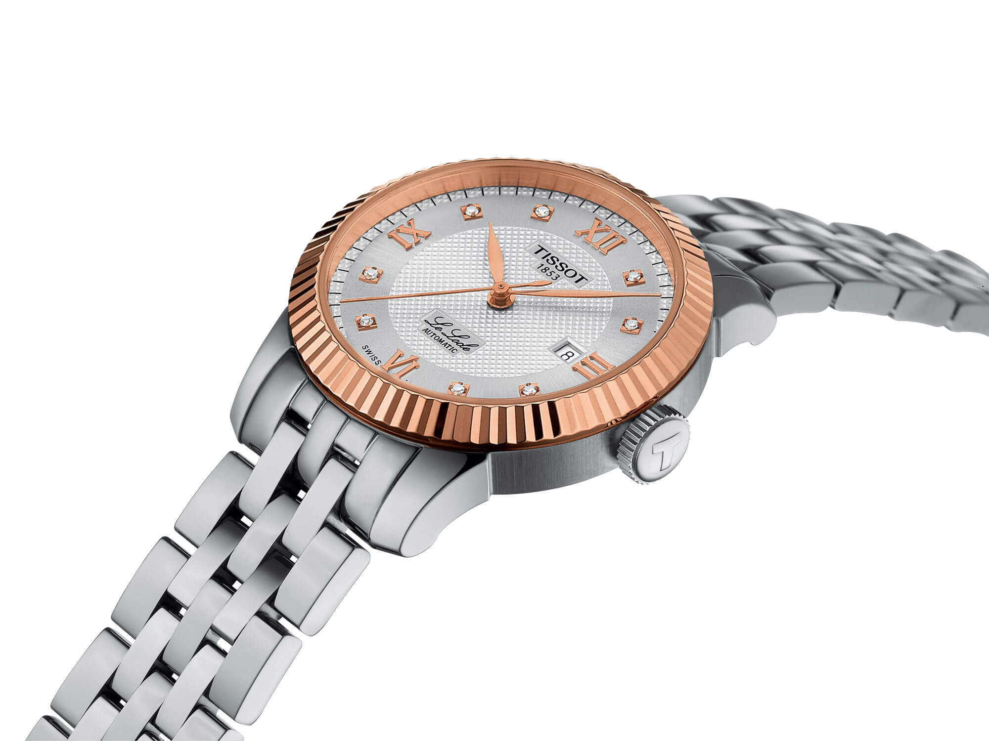 Na ciferníku se nacházejí jemné římské indexy a osm pravých diamantů, které dodávají modelu jedinečný lesk. Ručičky v barvě růžového zlata harmonicky ladí s precizním gilošovaným vzorem na pozadí. Praktický datumový ukazatel u třetí hodiny umožňuje rychlé zjištění aktuálního data a zvyšuje užitnou hodnotu hodinek. Ciferník chrání safírové sklíčko odolné proti poškrábání, které zaručuje trvanlivost a dokonalou čitelnost i po letech používání. Tissot Le Locle Automatic pohání automatický strojek Powermatic Nivachron™, který je známý svou vysokou přesností, stabilitou a odolností vůči magnetickým polím. Tento švýcarský mechanismus je zárukou spolehlivosti a odolnosti, což činí z těchto hodinek ideální volbu pro ženy, které vyžadují nejen eleganci, ale také bezchybnou funkčnost.