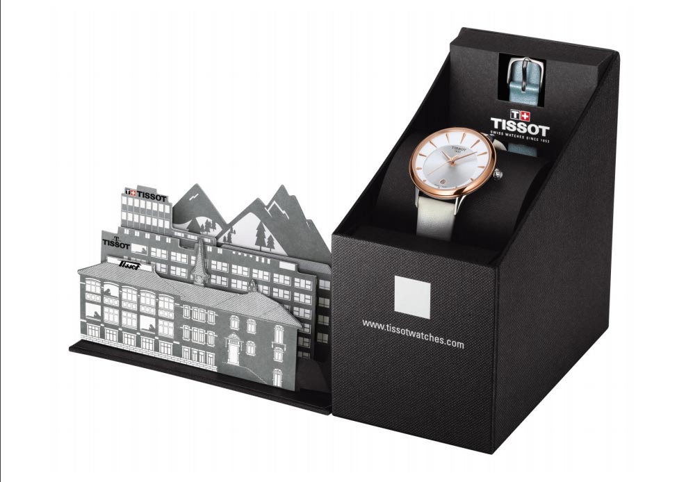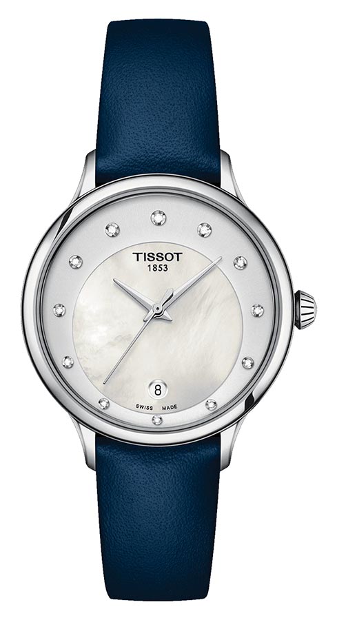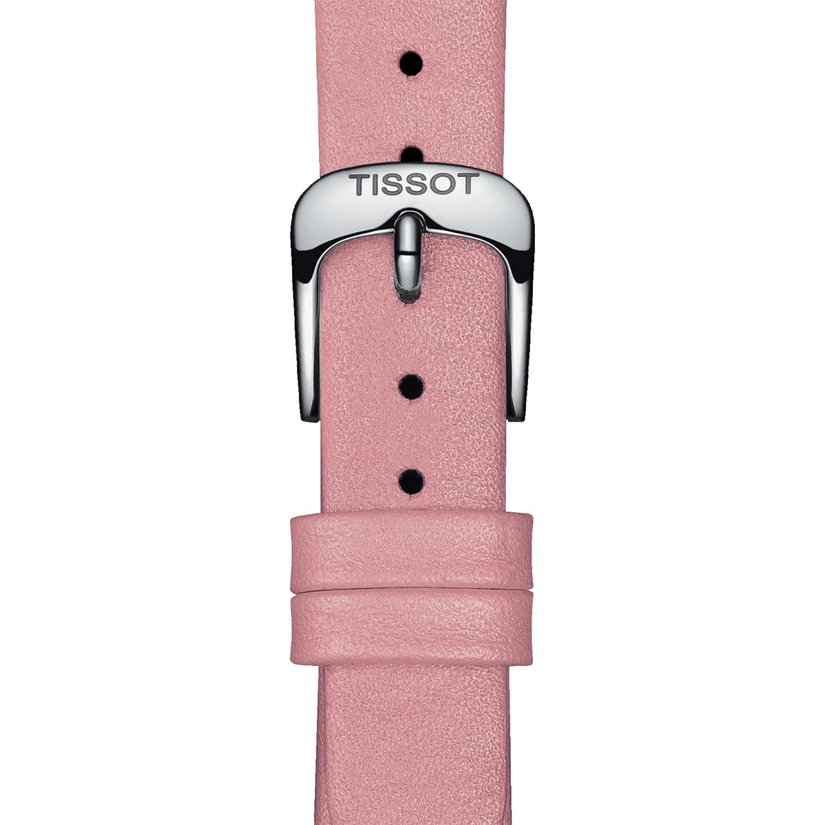 Nejnovější rodina Tissot se připojuje k rozsáhlé rodině T-Lady se třemi modely s přídavným popruhem pro snadnou výměnu. Kolekce T-Lady nabízí kousky, o kterých se dá říci, že jsou víc než jen hodinky. Jsou to šperky, u kterých výrobce používá luxusní materiály zaručující dlouhodobou spokojenost a netradiční tvary jako v případě asymetrického Odaci-T bohaté na elegantní a zajímavé formy. Kromě diamantů je na ciferníku také obzvláště třpytivá bílá perleť, nepravidelný segment se sametovým povrchem, důsledně kruhové datumové okénko a signatury TISSOT a Swiss Made. Subtilní pouzdro o průměru 33,17 mm je vyrobeno z vysoce odolné proti poškrábání a korozi nerezové oceli, která precizně vyleštěná dokonale ladí se zbytkem svým stříbřitým leskem. Jeho krajka je korunována bílým achátovým kabošonem.