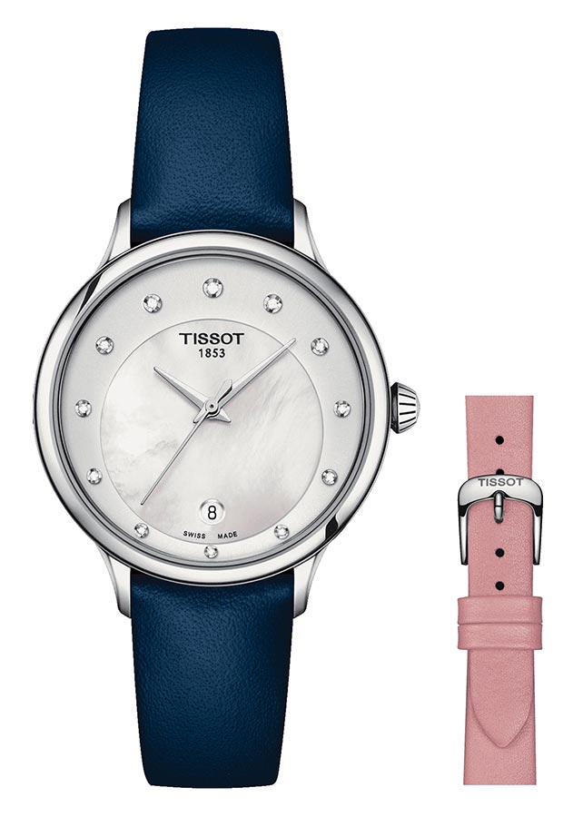 Švýcarské dámské hodinky Tissot Odaci-T T133.210.16.116.00 jsou exkluzivní model s bezchybně zářícími diamanty Top Wesselton, který má tu čest se čerstvě objevit v jedné z kolekcí Tissot Odaci-T. Časomíra vzbuzuje obdiv ušlechtilými ornamenty, elegantní barevnou kombinací, ale i jedinečnou architekturou, ve které dominují netradiční ovály. Pro ženy, které si cení třídy a harmonie, je to návrh šitý na míru! Co dalšího tento model nabízí? Možnost jednoduché výměny popruhu, díky které si jej uživatel může sestavit podle outfitu a nálady, má k dispozici druhý, přídavný popruh, který je součástí sady. Tímto způsobem Tissot nabízí až dvoje hodinky v jednom! Jeden na řemínek v módním a odvážném odstínu chrpově modré a druhý v pastelově růžové.