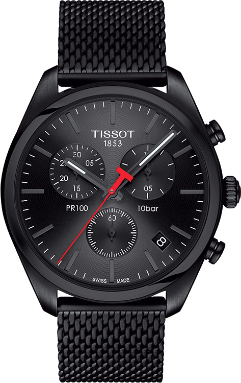 Pánské hodinky Tissot PR 100 Quartz Gent Chronograph T101.417.33.051.00 . Model s chronografem představuje zcela novou vizi klasických hodinek ve sportovní edici, díky které je můžete nosit jak k elegantním outfitům, tak k džínám. Tissot PR100 jsou klasické hodinky pro lidi, kteří hledají hodinky pro každou příležitost. Zvýšená voděodolnost až do 100 m znamená, že ji nemusíte sundávat, ani když se chystáte plavat. Věrný svému názvu je nový Tissot PR 100 přesný a působivý. Stejně jako PR 50 se nová řada hodinek jistě stane velkým hitem u mužů a žen po celém světě. Nové modely spojují tradici s módním vzhledem a vysoce kvalitními materiály zvenčí a švýcarskou spolehlivostí uvnitř. Celá řada má moderní design spojený s vysokou voděodolností a novým, velmi odolným náramkem s pohodlným zapínáním na tlačítko a dynamickými ručičkami pokrytými vrstvou luminiscenční hmoty Super-LumiNova .