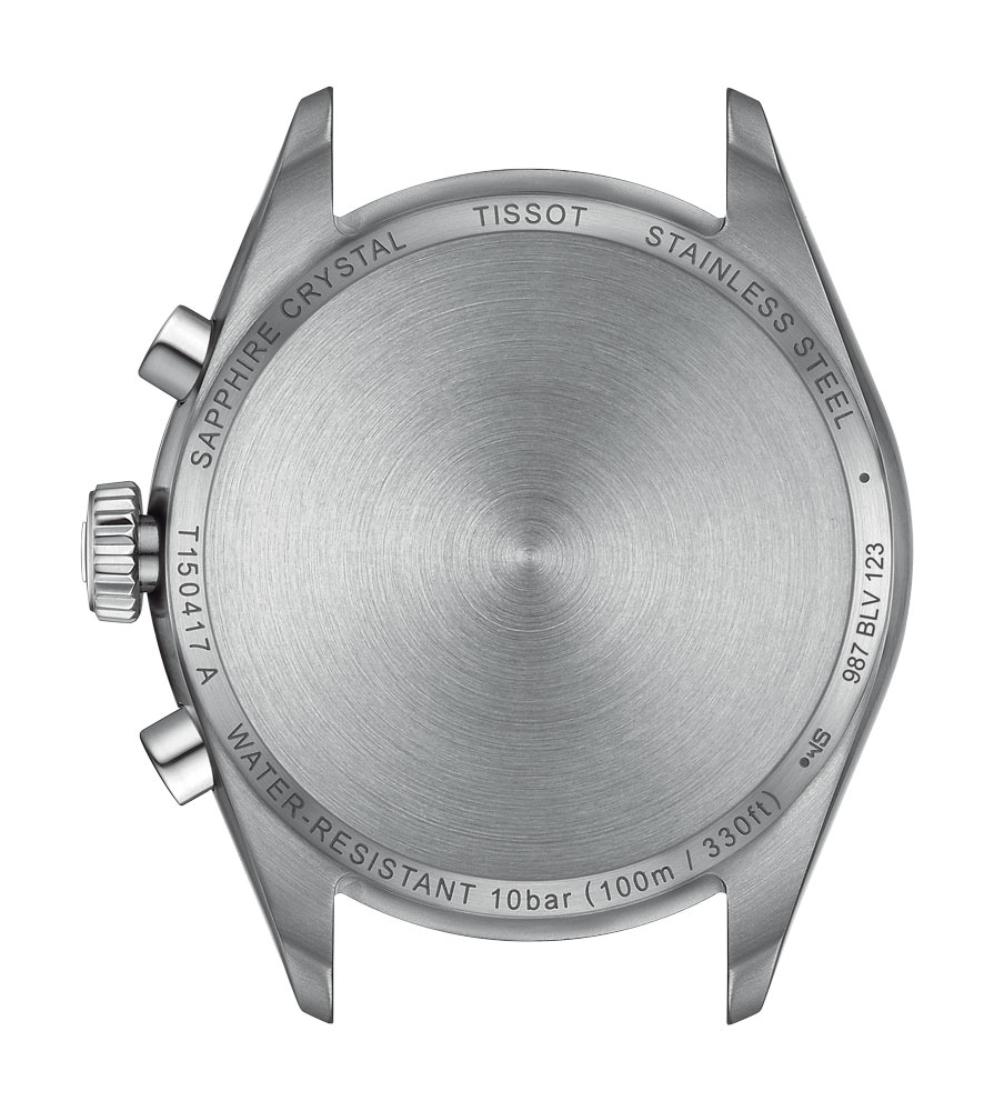Sportovní a zároveň elegantní časoměřič Tissot PR 100 T1504171109100 zaujme 40mm pouzdrem a ocelovým náramkem, který kombinuje kartáčované a lesklé prvky. Na pravé straně pouzdra se nachází korunka a tlačítka pro ovládání chronografu. Zadní část tohoto modelu je z nerezové oceli. Hodinky Tissot PR 100 jsou vodotěsné do hloubky 100 metrů. Každý fyzicky aktivní muž může plavat s hodinkami bez obav z jejich poškození — konstrukce je také odolná proti různým druhům koroze. Uvnitř pouzdra je instalován švýcarský křemenný mechanismus G10.212 Chronograph, který zajišťuje přesnost a spolehlivost.