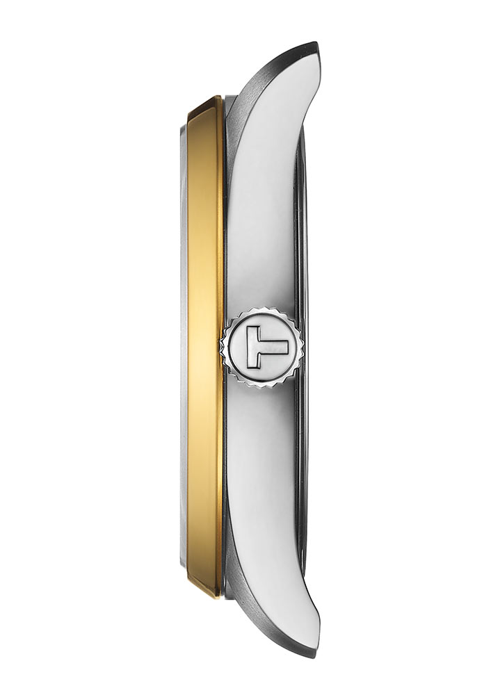 Dámské hodinky Tissot PR 100 T150.210.21.031.00 tvoří kulaté pouzdro z nerezové oceli ve stříbrné a zlaté barvě. Stříbrné pouzdro má lesklou, pozlacenou lunetu. Tato ocel nerezaví, nezpůsobuje alergie a je odolná vůči různým druhům koroze. Zlatý PVD povlak zkrášluje a činí celý design atraktivnějším a posiluje rám. Klasické hodinky Tissot PR 100 o velikosti 34 mm se snoubí s ocelovým náramkem s motýlkovou sponou. Zakryje vaše zápěstí pohodlným a bezpečným způsobem. Na rubu je celá konstrukce doplněna ocelovým krytem. Hodinky jsou vodotěsné do cca 100 metrů, což vám umožní bezpečně plavat s hodinkami na zápěstí.