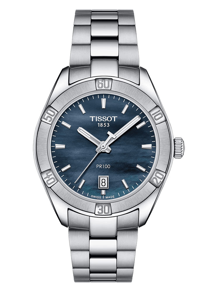 Tissot PR 100 Sport Chic Lady T101.910.11.121.00 Sportovní verze hodinek Tissot PR 100 pro dámy. Kombinace sportu a elegance, velké pouzdro z nerezové oceli korunované rámem s arabskými indexy. Čitelný číselník s vystupujícími indexy, na kterých je luminiscenční látka. Třída těsnosti 10 bar/100 m znamená, že jej nemusíte sundávat, ani když se hodláte jít koupat. Věrný svému názvu je nový Tissot PR 100 přesný a působivý. Moderní design v kombinaci s vysokou voděodolností a novým, velmi odolným náramkem s pohodlným zapínáním na tlačítko a dynamickými ručičkami pokrytými vrstvou luminiscenční hmoty Super-LumiNova.