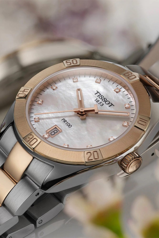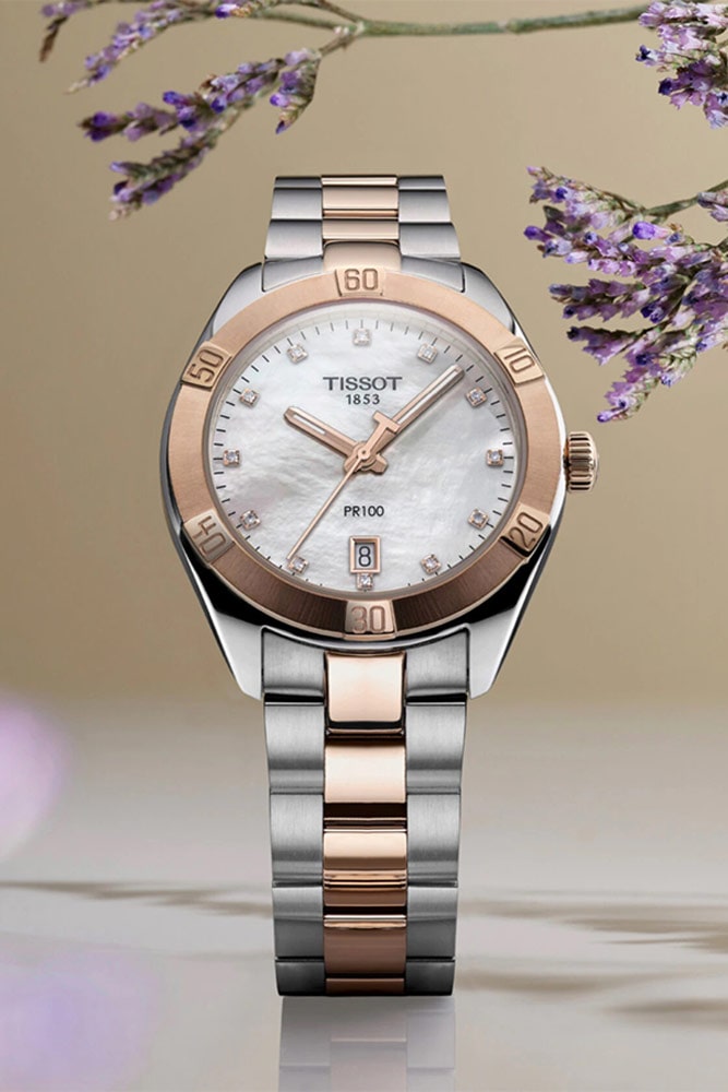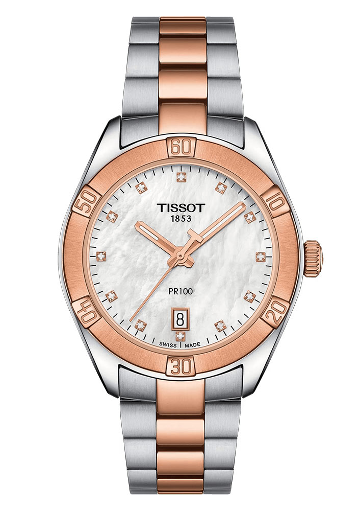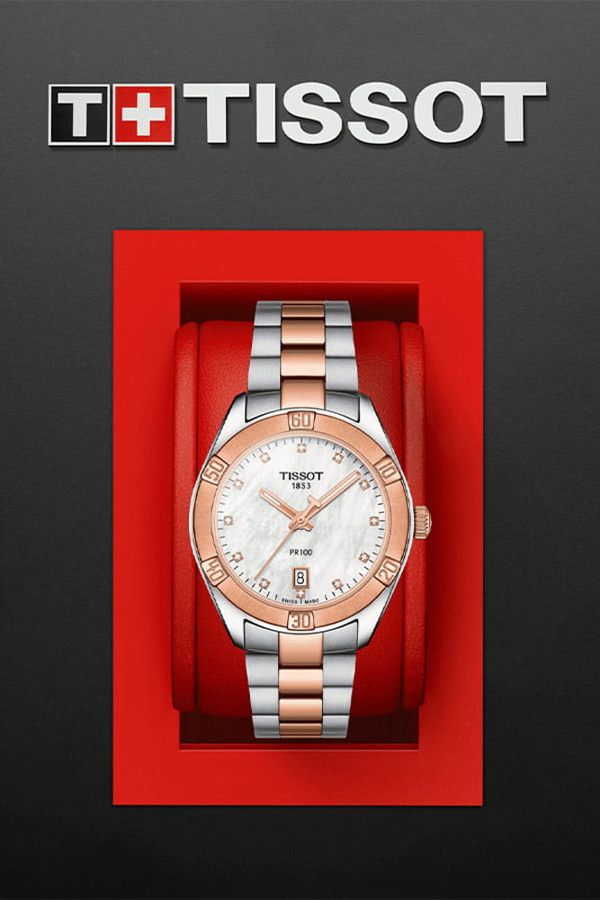Tissot PR 100 Sport Chic Lady T101.910.22.116.00 Sportovní verze hodinek Tissot PR 100 pro dámy. Kombinace sportu a elegance, velké pouzdro z nerezové oceli korunované rámem s arabskými indexy. Čitelný číselník s vystupujícími indexy, na kterých je luminiscenční látka. Třída těsnosti 10 bar/100 m znamená, že jej nemusíte sundávat, ani když se hodláte jít koupat. Věrný svému názvu je nový Tissot PR 100 přesný a působivý. Moderní design v kombinaci s vysokou voděodolností a novým, velmi odolným náramkem s pohodlným zapínáním na tlačítko a dynamickými ručičkami pokrytými vrstvou luminiscenční hmoty Super-LumiNova.