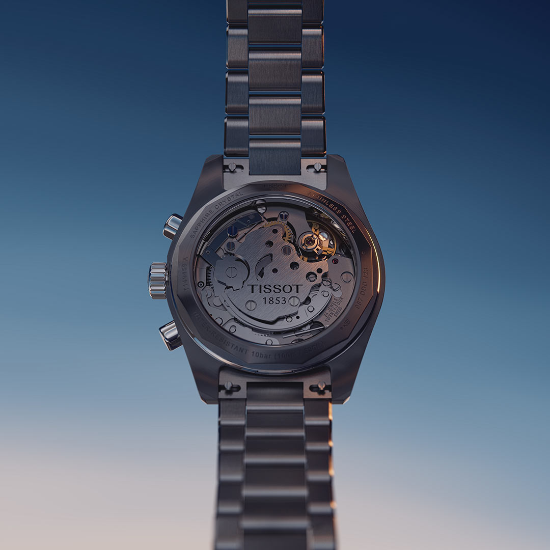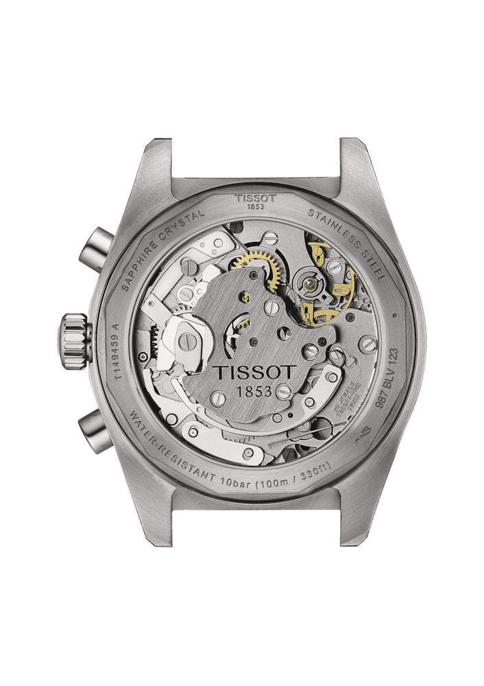 Na přední straně jsou automatické hodinky Tissot chráněny safírovým sklem odolným proti poškrábání s antireflexní vrstvou, která odráží světlo. Sklo kryje černý ciferník s funkčně bohatým ciferníkem. Super-LumiNova®, pokrývající lunetu, indexy a ručičky hodinek, zajišťuje nejen vynikající viditelnost ve tmě, ale také zdůrazňuje praktičnost tohoto modelu. Na ciferníku jsou dva subciferníky chronografu doprovázené 12/24hodinovým ciferníkem času. Ikonický švýcarský mechanismus ETA Valjoux A05 vybavený antimagnetickou pružinou Nivachron™ je instalován pod číselníkem. Švýcarský mechanický chronograf s 60hodinovou rezervou chodu nejen vyzdvihuje inovaci značky Tissot, ale také vzdává hold tradici a řemeslu.