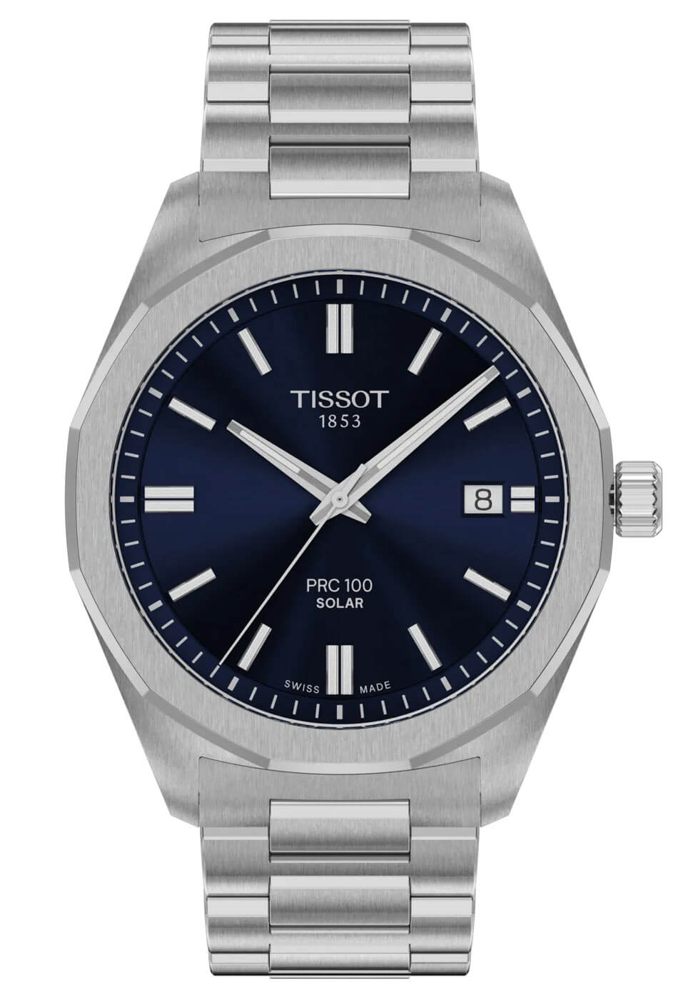Srdcem hodinek je moderní solární mechanismus s technologií Lightmaster Solar, který čerpá energii ze světla. Místo tradiční baterie je zde použit akumulátor, který se nabíjí jak slunečním, tak umělým světlem – stačí každodenní vystavení jakémukoli zdroji světla, aby hodinky nepřetržitě fungovaly. Plné nabití mechanismu umožňuje chod hodinek po mnoho týdnů, a když se úroveň energie blíží vybití, speciální indikátor End Of Energy (E.O.E.) na to upozorní. Tato funkce signalizuje nízký stav nabití například skokovým pohybem sekundové ručičky, čímž diskrétně informuje, že je čas hodinky opět vystavit světlu. Číselník hodinek Tissot PRC 100 Solar Quartz je navržen tak, aby efektivně propouštěl světelné paprsky k solárním panelům a zároveň okouzloval propracovaným designem. Má přehledné hodinové indexy a elegantně tvarované ručičky pokryté luminiscenční vrstvou Super-LumiNova®, což umožňuje čtení času i ve tmě. Na číselníku je také praktický datumovka, která je diskrétně zakomponována do designu. Dále se zde nachází logo Tissot a nápis "Solar" pod názvem kolekce PRC 100, které jemně zdůrazňují přítomnost moderní technologie v klasické podobě hodinek.