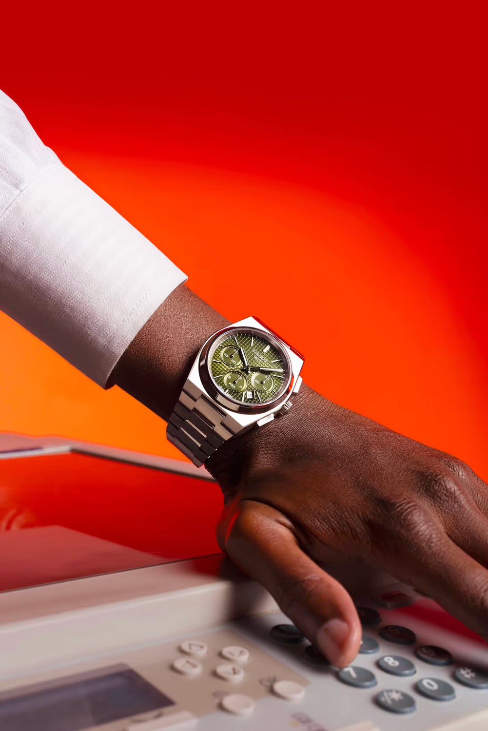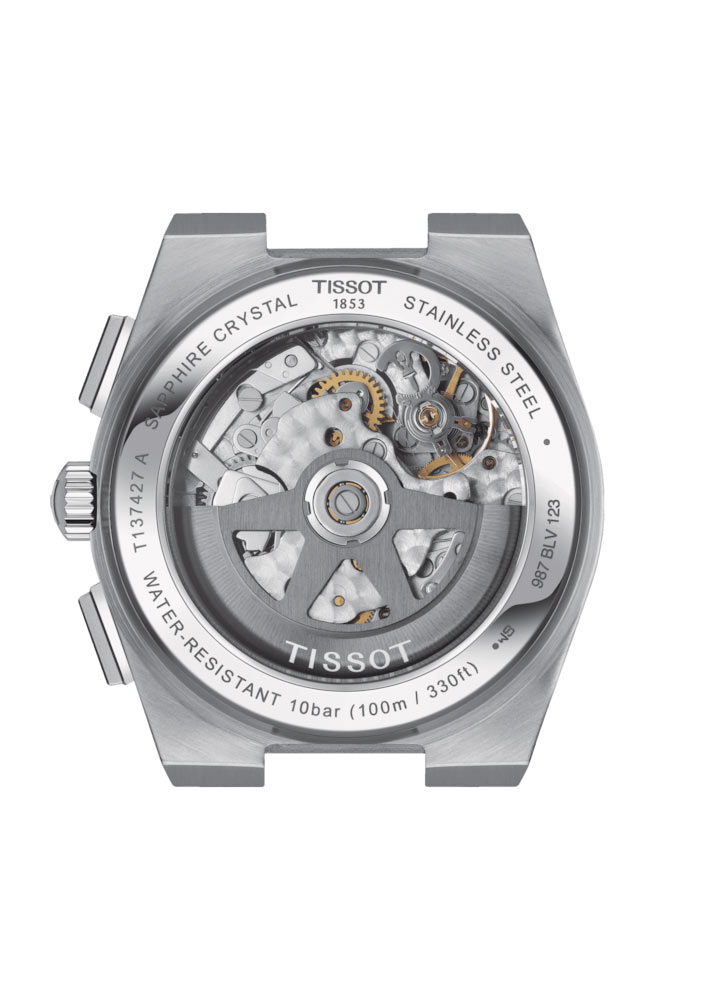 Tissot PRX Automatic Chronograph T137.427.11.091.00 je aktualizovanou verzí vzrušující reedice ikonických hodinek Tissot z konce 20. let. 70 ve stylu pop art. Další edice je vybavena ikonickým švýcarským automatickým natahovacím mechanismem Valjoux A05 H31, který má rezervu chodu přibližně 60 hodin. Tato verze představuje vzrušující design a pevnost. Název kolekce není náhodný. PRX - "PR" označuje přesnost a odolnost a "X" označuje vodotěsnost hodinek při 10 barech, tedy asi 100 m.