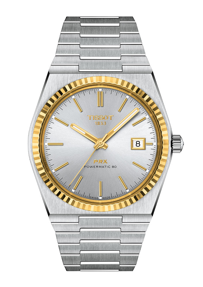 „Innovation by Tradition“ je slavné motto švýcarského výrobce hodinek Tissot, které nejlépe vyjadřuje mistrovský talent značky pro tvorbu designů inspirovaných originály z dřívějších let, odpovídajících současné době. Tissot PRX jsou hodinky s hladkým tenkým zlatým prstenem, jemným plochým pouzdrem ve tvaru "tonneau", štíhlým i vypouklým, pozlacenými indexy pokrytými Super-LumiNova a ocelovým náramkem se širokými příčnými články (typické konstrukce z konce 70.) bez oček, takže hladce integrována s pouzdrem. Tělo je maskulinní kombinací vertikálního kartáčovaného povrchu a zkoseného leštění. Systém a konstrukce náramku umožňují dokonalé přilnutí a ergonomické přizpůsobení hodinek jakémukoli typu zápěstí.