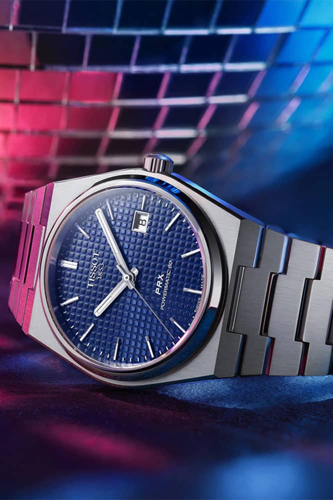 „Innovation by Tradition“ je slavné motto švýcarského výrobce hodinek Tissot, které nejlépe vyjadřuje mistrovský talent značky pro tvorbu designů inspirovaných originály z dřívějších let, relevantních pro současnou dobu. Tissot PRX jsou hodinky s hladkou, tenkou a kulatou lunetou, jemným plochým pouzdrem ve tvaru tonneau, současně tenkými a vypouklými indexy potaženými Super-LumiNova a ocelovým náramkem se širokými, příčnými články (typické pro design z konce 70. bez oček, takže je hladce integrován do pouzdra. Tělo je maskulinní kombinací vertikálního kartáčovaného povrchu a zkoseného lesku. Systém a konstrukce náramku umožňují dokonalé přilnutí a ergonomické přizpůsobení hodinek jakémukoli typu zápěstí.