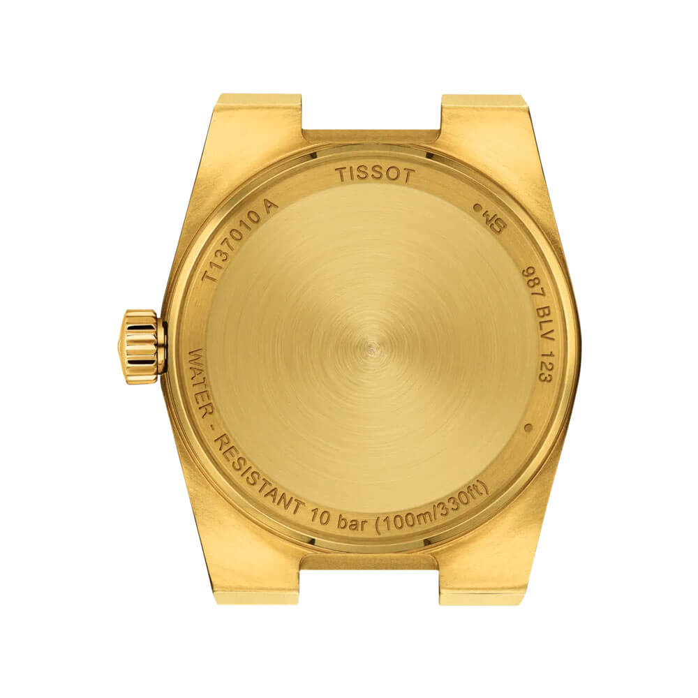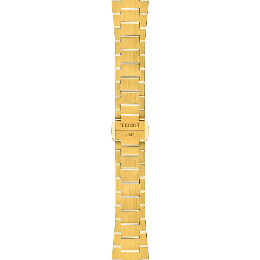 Šampaňsko-zlatý číselník s kartáčovanou úpravou ladí se stylem moderní elegance – harmonický, bez zbytečných ozdob, přitahuje pozornost klidem a jednotou kompozice. Jemné indexy a tenké ručky doplňují design, který spojuje funkci s estetikou. Uvnitř pracuje švýcarský quartzový strojek s funkcí EOL (End Of Life), která signalizuje nízký stav baterie. Tissot PRX Lady T137.010.33.021.00 na náramku ve zlaté verzi jsou hodinky, které neznají kompromisy – spojují módu a kvalitu v nadčasové podobě.