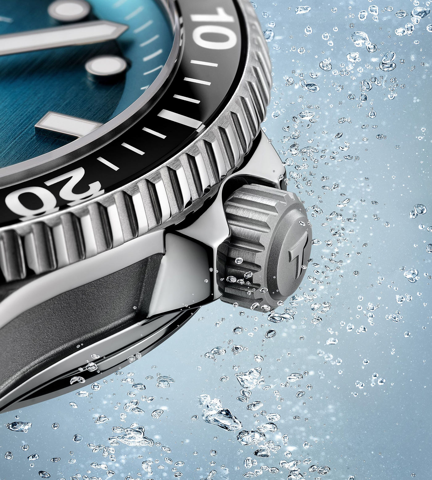 Na přední straně jsou hodinky Tissot vybaveny otočnou lunetou s minerální vložkou. Na ní je nanesena minutová stupnice, která usnadňuje sledování uplynulého času například při ponoření. Dalším prvkem je vysoce kvalitní safírové sklíčko s antireflexní vrstvou, která odráží světelné paprsky a zvyšuje čitelnost ciferníku. Tissot T120.807.11.091.00 nabízí mimořádně čitelný gradientní ciferník v modré barvě. Ručičky a indexy v diverském stylu jsou naplněny švýcarskou luminiscenční hmotou Super-LumiNova®. Ciferník je čitelný za všech světelných podmínek. Funkčnost doplňuje datumovka. Okénko na šesté hodině ukazuje aktuální den v měsíci.