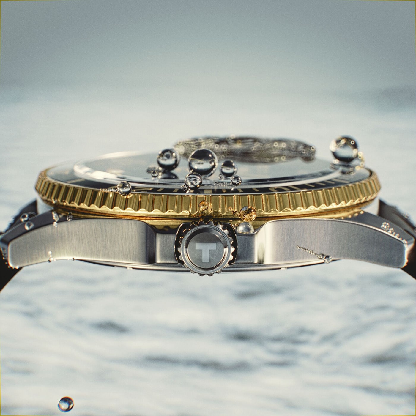 Tissot T1204102705100 je typické sportovní pouzdro z nerezové oceli třídy 316L v univerzální velikosti 40 mm, které je utěsněno až na 300 metrů. Taková vysoká těsnost vám umožňuje potápět se s časovačem na zápěstí bez obav z poškození mechanismu. Třída vodotěsnosti 30 bar je zachována díky šroubovací korunce a pouzdru se symbolem kolekce, tedy mořského koníka. Na přední straně pouzdra je vidět pozlacená otočná luneta s černým kroužkem, na kterém je stupnice užitečná pro potápění.