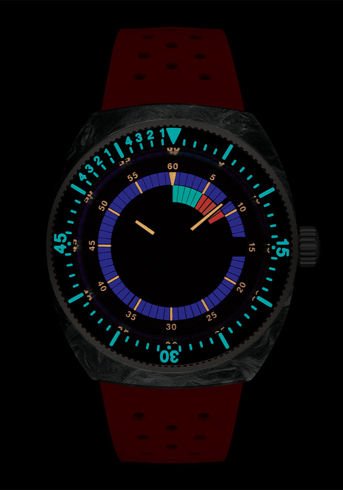 Pod safírovým sklíčkem vysoce odolným proti poškrábání s antireflexní vrstvou se skrývá vysoce funkční číselník. Design číselníku téměř dokonale odráží design prvních modelů. Má čisté ručičky, šedý minutový prsten a stupnici regaty. Regatta Scale je funkce pro jachtaře, která počítá minuty od 0 do 10 během procedury startu závodu. Ve 3 hodiny je datumové okno s aktuálním dnem v měsíci. Super-LumiNova osvětlí lunetu, ručičky a číselník, když není světlo. Ciferník v retro stylu je navržen tak, abyste z něj na první pohled vyčetli údaje.